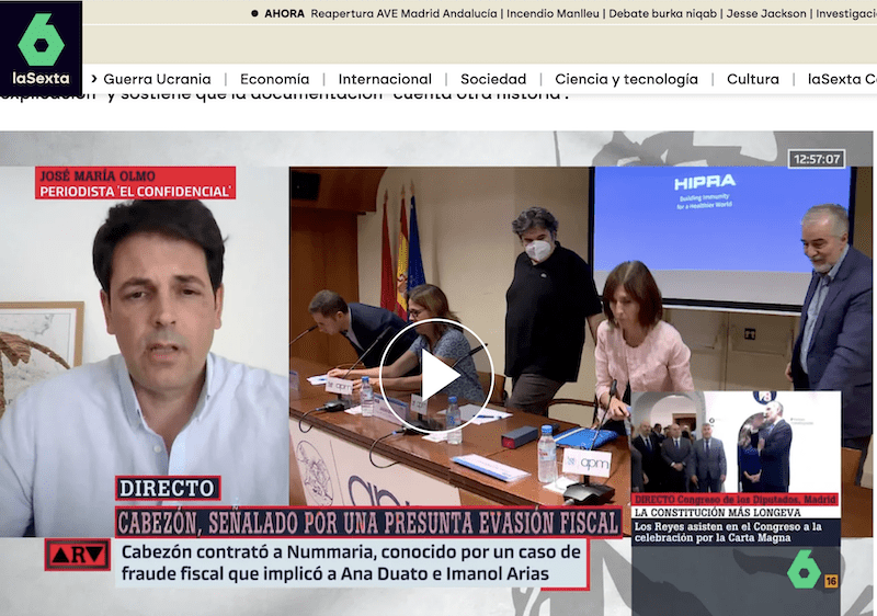Olmo: «Hoy publicamos nuevos documentos que prueban que, como mínimo, fue cliente de Nummaria hasta 2015». Y ha añadido un dato clave: «Parte de este entramado ha seguido operando hasta la actualidad. Ha utilizado a uno de los testaferros españoles para hacer negocios hasta 2025».