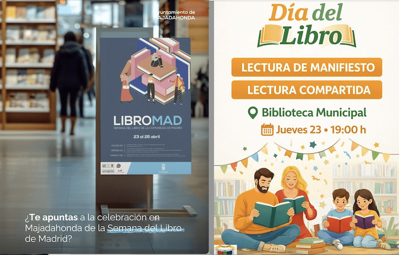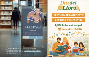 Semana del Libro en Majadahonda con actividades para todos los públicos: Jueves 23: La Hora del Cuento. Viernes 24: Taller del cómic; Llévate un libro a casa; La sala de catapunchimpún. Sábado 25: Romances a la carta.