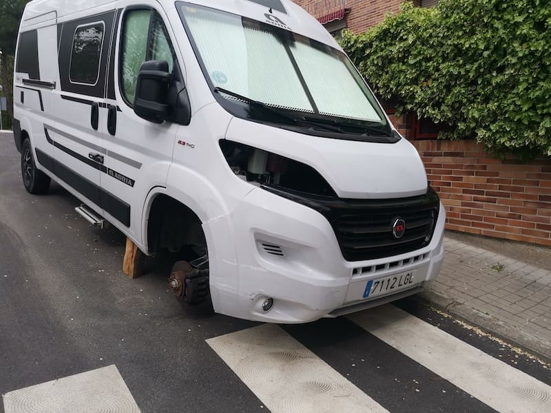 Una furgoneta robada y sin ruedas causa riesgos y peligro en Majadahonda: “he avisado a la Policía Local pero todavía no hay reacción alguna”