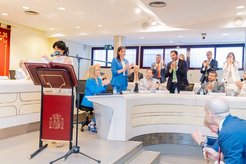 A pesar de las estrecheces y aglomeraciones, el ambiente fue alegre e ilusionante, como corresponde a toda fiesta de la democracia, y la constitución de un nuevo Ayuntamiento por cercanía y ejemplaridad lo es. La organización de Protocolo y Comunicación fue además perfecta: tanto la Secretaría General que dirige Celia Alcalá como los restantes departamentos implicados funcionaron a la perfección, la retransmisión por TV tampoco registró incidencias negativas, como en otras sesiones de la anterior legislatura, y los asistentes salieron más que satisfechos, según opinión unánime expresada al término del acto.