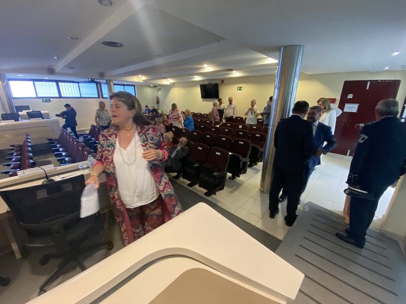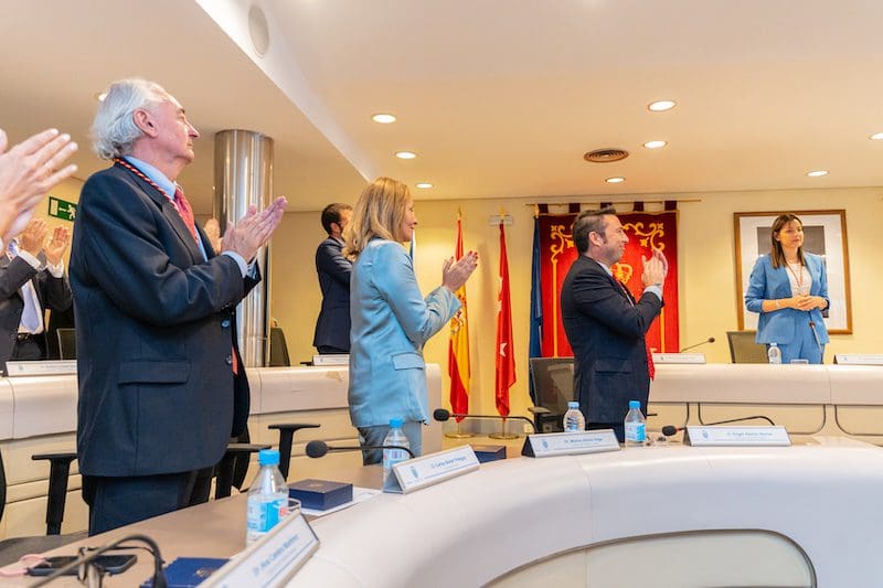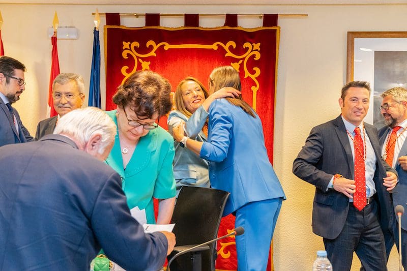 MANU RAMOS. La investidura de la alcaldesa de Majadahonda, Lola Moreno (PP), y la toma de posesión de los 25 nuevos concejales en el Ayuntamiento de Majadahonda este sábado 17 de junio (2023) dejó unas cuantas anécdotas y numerosas fotografías sobre lo que aconteció en esa sesión plenaria. En primer lugar las imágenes evidencian que el salón de plenos se quedó pequeño: faltaban sillas pues solo tenían reserva de asiento los invitados (2 por concejal), las autoridades (los ex alcaldes Romero de Tejada, Narciso de Foxá y José Luis Alvarez Ustarroz), otras autoridades (la ex presidenta madrileña Cristina Cifuentes, el eurodiputado Antonio López-Istúriz, diputada de la Asamblea de Madrid, Mar Blanco), los jefes de Policía Local y Guardia Civil, los párrocos de Santa Catalina y Santa Genoveva y la prensa. No cabía ni un alfiler más (100 plazas). Quizás el Salón de Actos de la Casa de la Cultura (350 plazas) hubiera sido un lugar más apropiado y espacioso, pero la última decisión del anterior alcalde, no demasiado propicio a la participación vecinal en asuntos municipales, no podía dar más de sí. Y también se impuso la tradición.