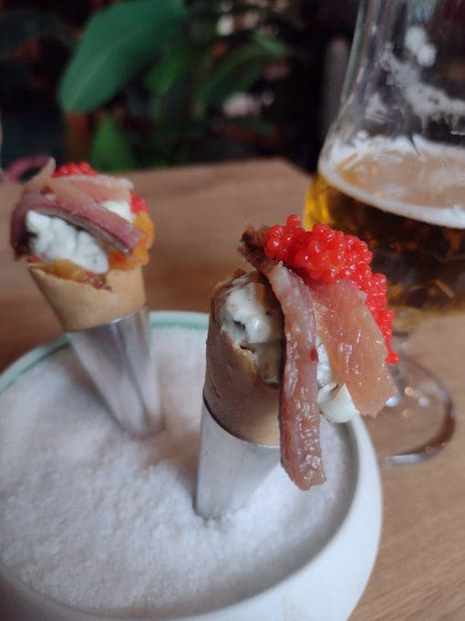 Raúl hizo una advertencia: «Majadahonda Tapa, una idea genial, lo estamos pasando en grande, pero ¡cuidado, en algún sitio, te cobran suplemento por tomártelo en la terraza! Aunque estábamos de pie en la barra!. Preguntad antes de pedir».