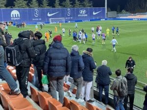 «QUIZÁS A NIVEL TÁCTICO NO HAYA SIDO UN PARTIDO EXQUISITO, PERO A NIVEL DE INTENSIDAD, EL PÚBLICO TUVO LO SUYO». «A la vuelta de los vestuarios, los dos equipos se miden. El Real Madrid C sale con hambre de remontar el encuentro. En el 52′, falta peligrosa en la frontal del área pero el disparo se marcha por las nubes. Dos minutos después, el Rayo Majadahonda responde. No obstante, la sensacional doble parada de Javier Navarro frustra al equipo local. El 33 desplegó sus mejores reflejos para evitar el 3-0. La grada del Cerro no se lo podía creer. Antes de llegar a la hora de partido, córner para el Real Madrid C. En una confusión general y tras varios rebotes, Jaime Calleja recorta distancias. Los madridistas apenas celebran y el capitán deja el balón en el centro del campo rápidamente. A 30 minutos del pitido final, la remontada llama a la puerta. En un va y viene de jugadas, los dos equipos no se perdonan ningún balón. En más de una ocasión, los dos banquillos han saltado de sus zonas técnicas para protestar al colegiado. Quizás a nivel táctico no haya sido un partido exquisito, pero a nivel de intensidad, el público tuvo lo suyo. A pesar de mostrarse amenazante hasta el final de la partida, no fue suficiente para los chicos de Álvaro Gómez-Rey. Resultado final, 2-1. A pensar en el siguiente»!.