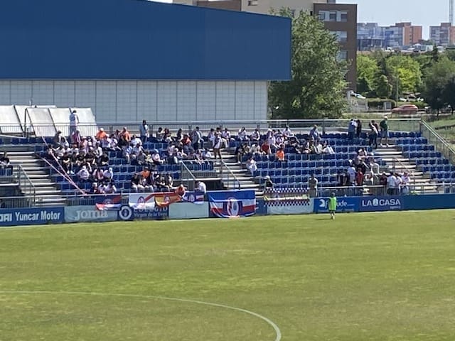 MANU RAMOS. (Majadahonda, 28 de abril de 2026). «Partido muy complicado. Lo hemos intentado llevar por donde siempre, siendo un poco más directos. No ha sido un partido bonito, pero nos podemos líderes y recuperamos la plaza que nos merecemos», declaraba el entrenador del Rayo Majadahonda, Guille Fernández. Era la cara alegre del partido que tuvo lugar en el estadio Fernando Torres. La parte amarga le tocó escribirla al periodista Sergio Martínez en Fuenlabrada Noticias, donde titula: «No hay fondo en el pozo del Fuenlabrada. El equipo empató a cero ante el Rayo Majadahonda y tiene todas las papeletas para descender a Tercera RFEF la próxima semana». Y es que la afición majariega está eufórica aunque esto es fútbol y aunque este domingo a las 12.00 de la mañana se enfrentan en el Cerro del Espino el primero contra el último cosas más extrañas se han visto en este deporte donde los burros vuelan. El toque de cordura con un optimismo realista con los pies en la tierra lo pone la aficionada Virginia García Arellano, la «musa» rayista que tanto inspira y ayuda a la afición: «El escenario para el ascenso directo ya lo tenemos perfecto. Lo vamos a conseguir. Nos lo merecemos todos».