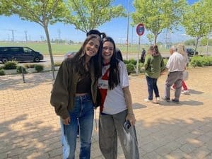 La mejor imagen de la alegría de la afición del Rayo Majadahonda en Fuenlabrada: dos aficionadas felices por el resultado