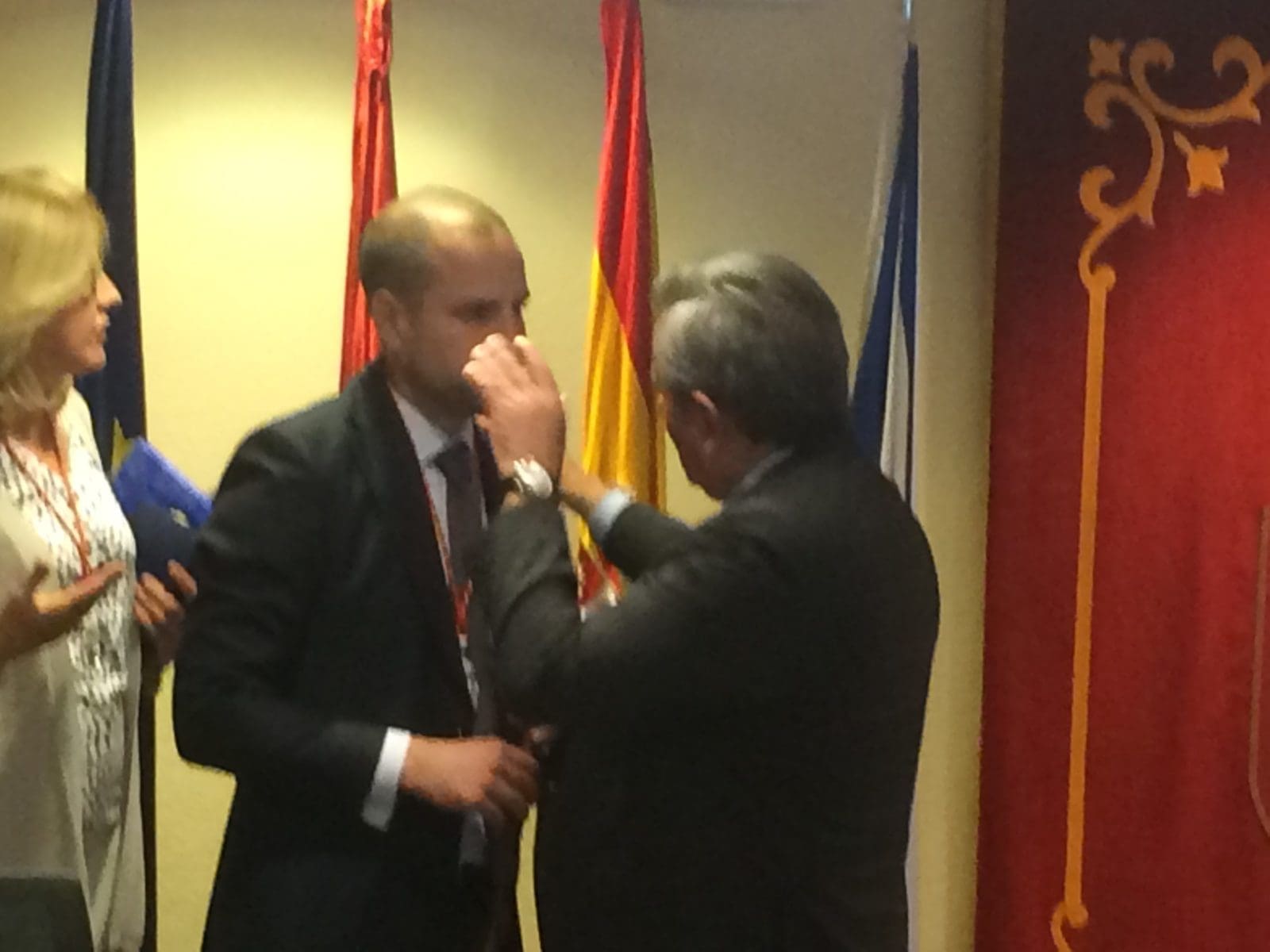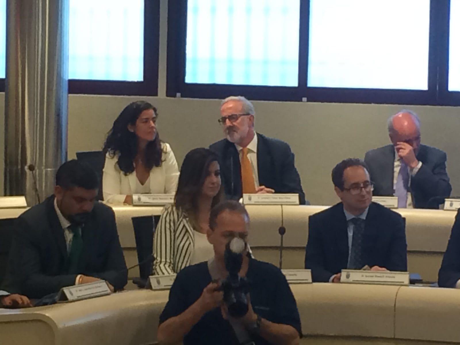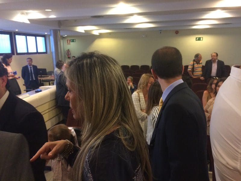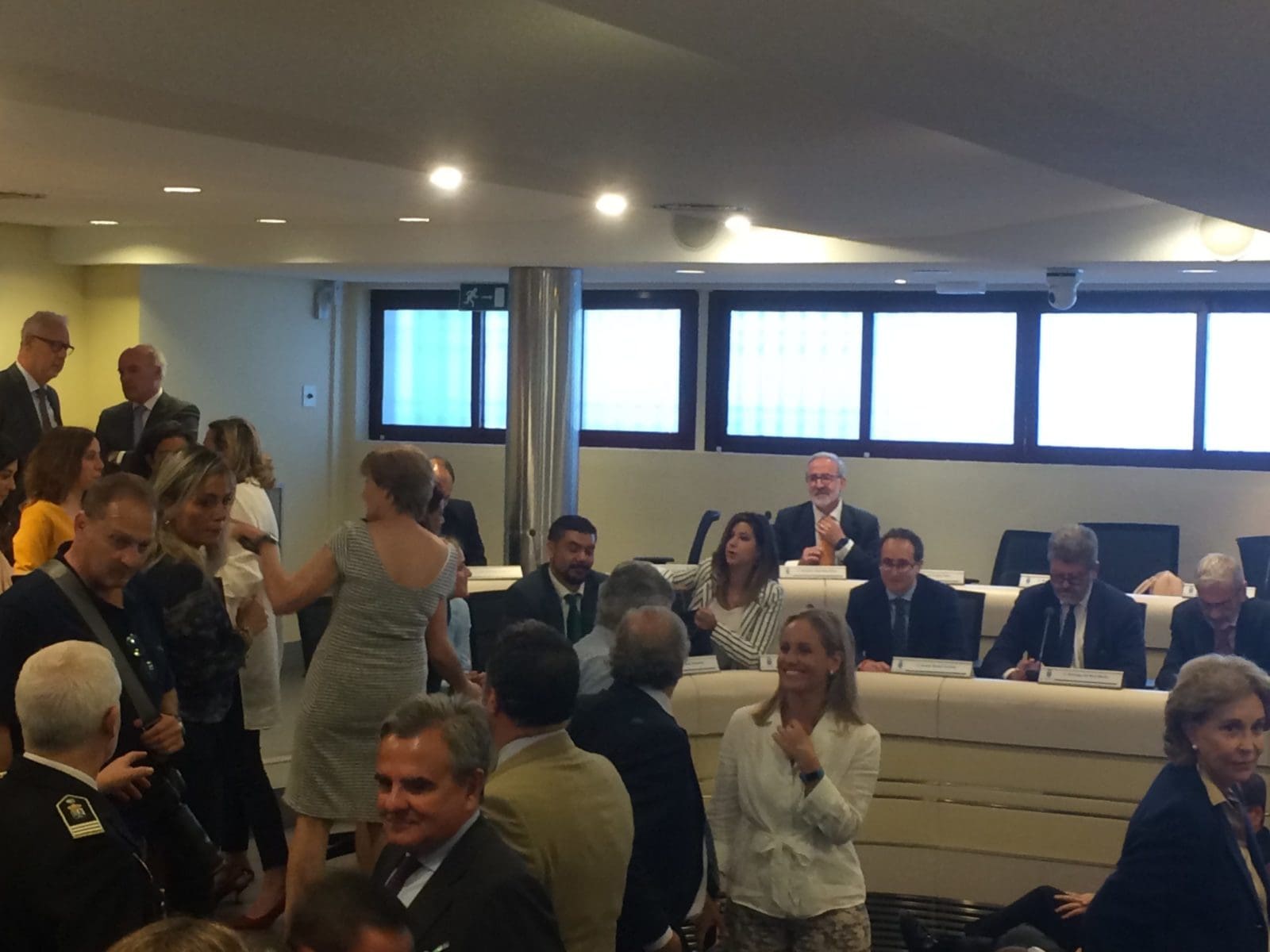 Cristina Cifuentes ha venido al pleno de constitución del nuevo Ayuntamiento de Majadahonda. Llevaba una cinta con los colores ?️? en el bolso.