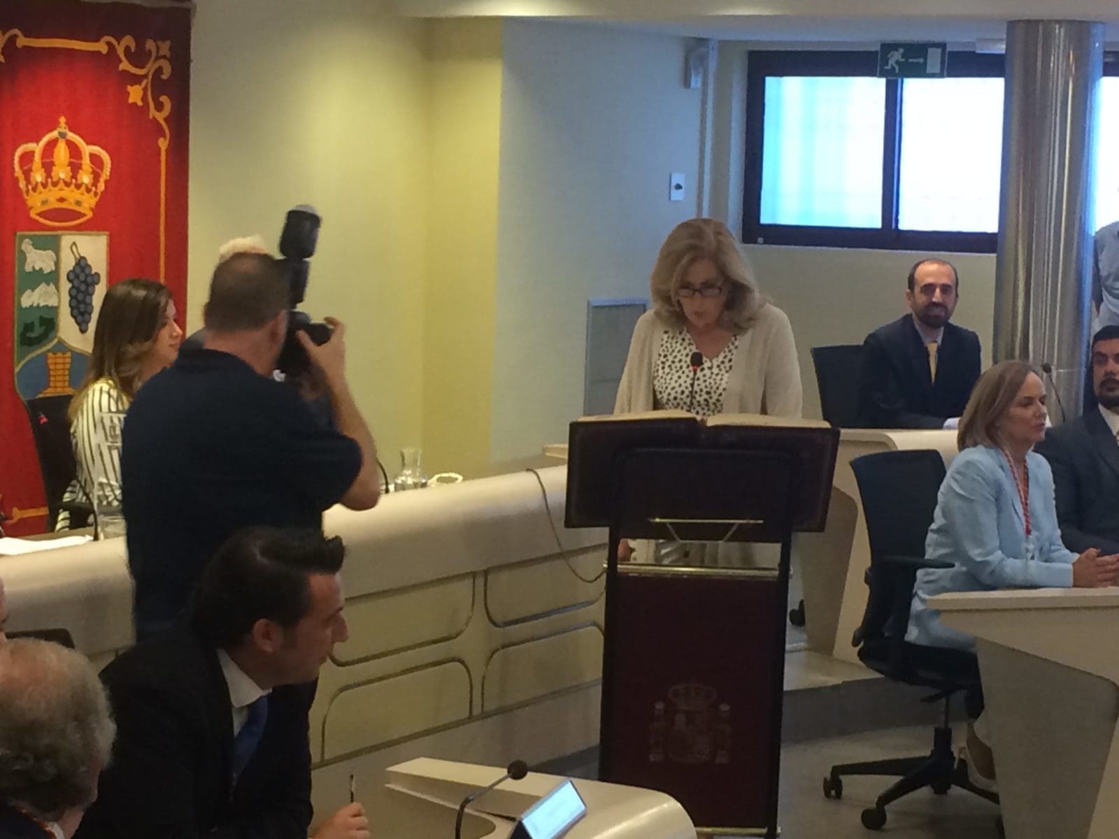 La Secretaria General, Celia Alcalá, indicando que se va a proceder a la constitución del Ayuntamiento de Majadahonda en la anterior legislatura: Mesa de Edad