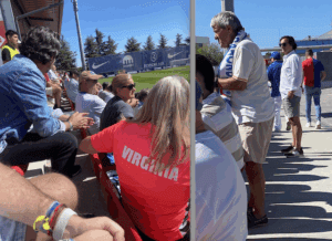 La famosa «Virginia», cuyo nombre fue coreado por la afición, y José Estévez, ex futbolista del Rayo Majadahonda y leyenda viva del club