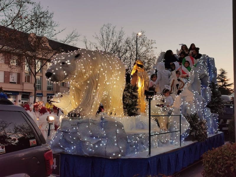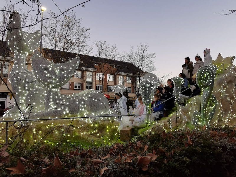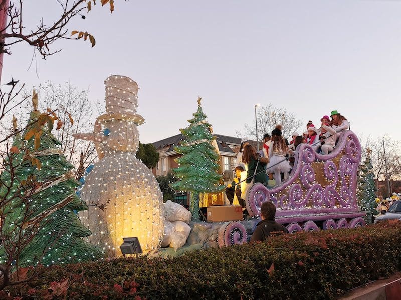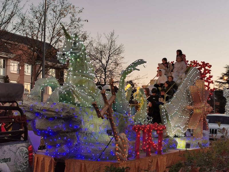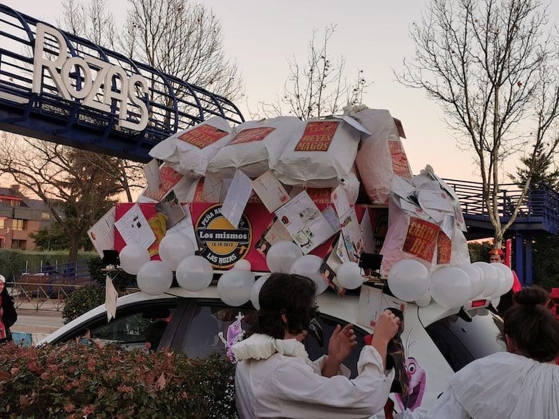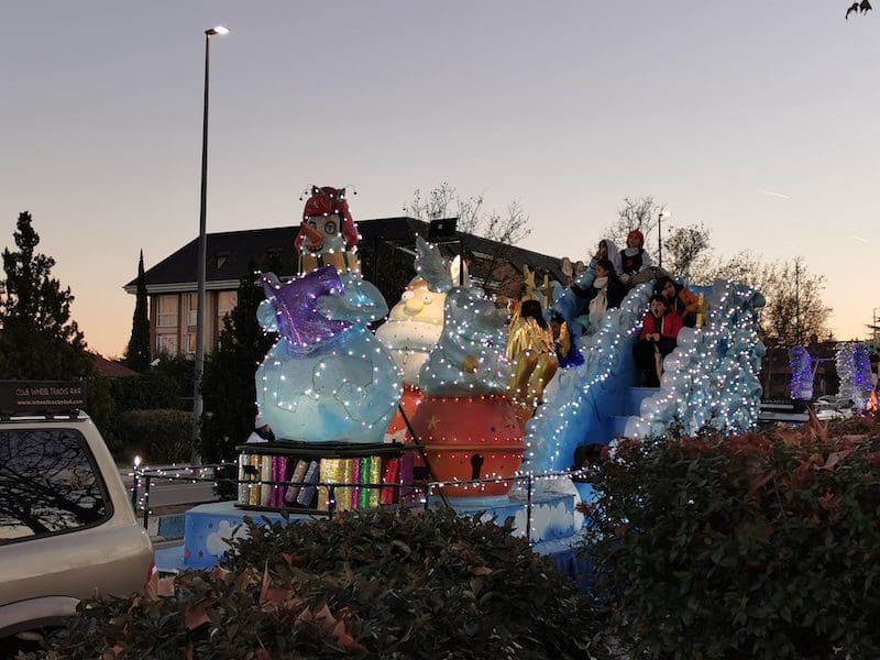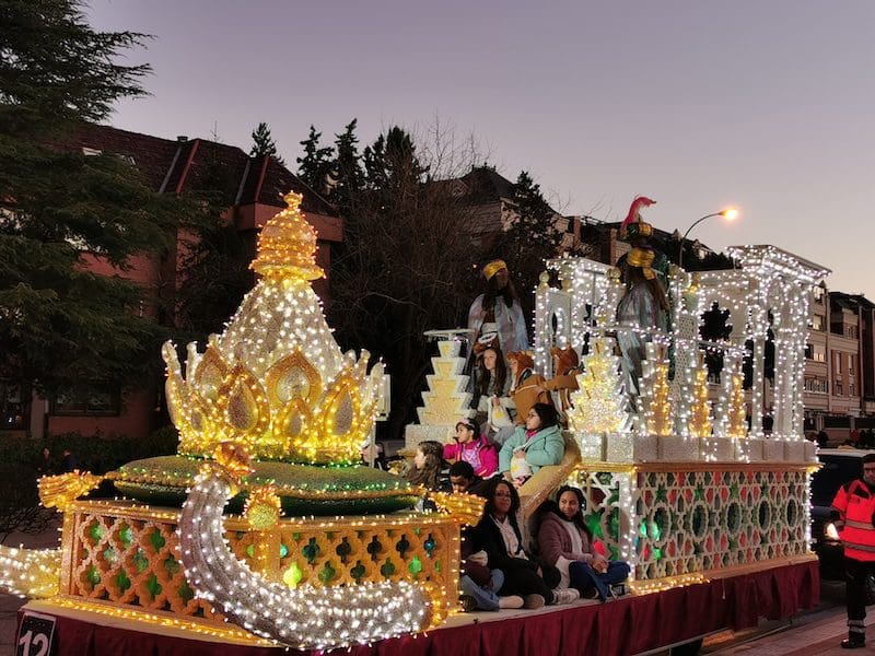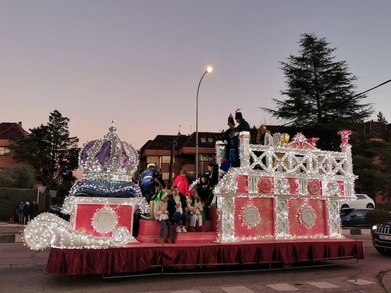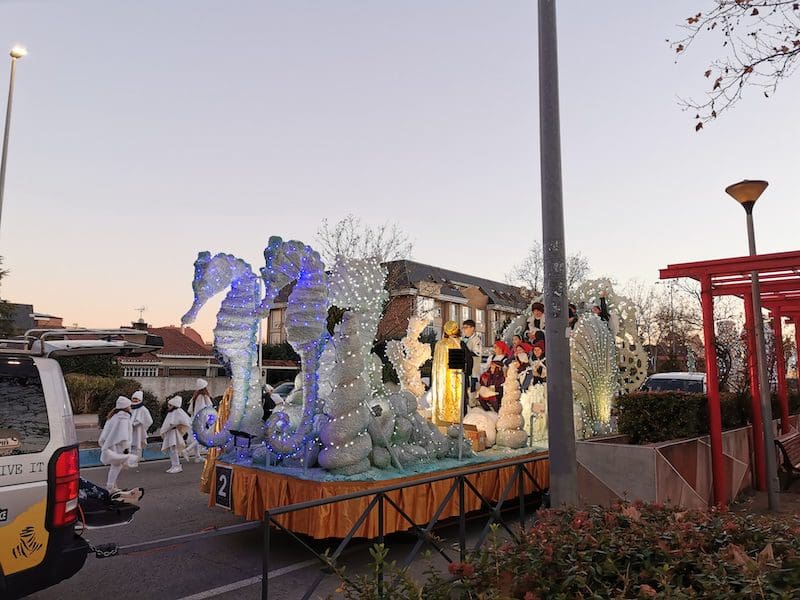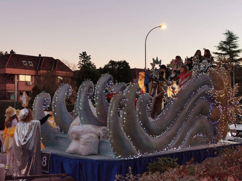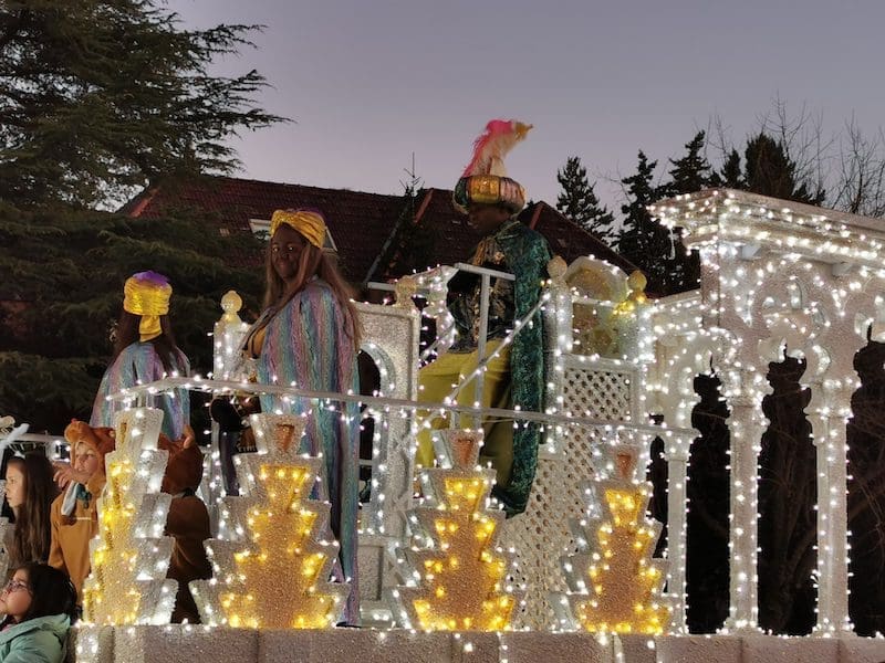 JULIA BACHILLER/ JULIA MARUGÁN (Fotos). Los vecinos de Las Rozas también disfrutaron en la mágica tarde-noche de este 5 de enero (2023) de su tradicional Cabalgata de Reyes, la cual dio comienzo a las 18:00 horas. Las peñas del municipio y asociaciones deportivas, junto con varias carrozas de fantasía, precedieron y acompañaron a Melchor, Gaspar y Baltasar. Cerró la comitiva un amplio dispositivo de seguridad y asistencia sanitaria del municipio, así como los empleados de la limpieza, indispensables tras el paso de la Cabalgata. El Cortejo Real recorrió la avenida de España hasta el Anfiteatro del Parque París, donde el alcalde recibió a Sus Majestades.