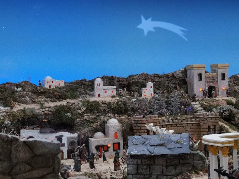 JULIA BACHILLER. La Parroquia de Santa Catalina Mártir de Majadahonda celebra este sábado 24 de diciembre (2022), día de Nochebuena, la “Misa del Gallo” para conmemorar el nacimiento de Jesús. El acto tiene lugar a las 12 en punto de la noche, como es tradición en esta fecha tan señalada, momento en el que majariegos y visitantes podrán descubrir el sorprendente Belén que les aguarda en el interior de esta parroquia. Ubicado en la habitual capilla junto a la nave central, abrirá sus puertas por primera vez en la fecha y día indicado hasta después del Día de Reyes, pudiendo ser visitado por aquellos que lo deseen en horario de apertura de la iglesia. La instalación de este Belén comenzó el 20 de octubre (2022) y concluyó el jueves 15 de diciembre (2022), cuando se dio por finalizada a falta tan solo de pequeños remates. Han sido numerosas las horas dedicadas a su montaje en un escenario diferente, con algunas nuevas figuras del afamado miniaturista José Luis Mayo Lebrija y numerosos pequeños detalles que aportan vida y movimiento a personajes estáticos.