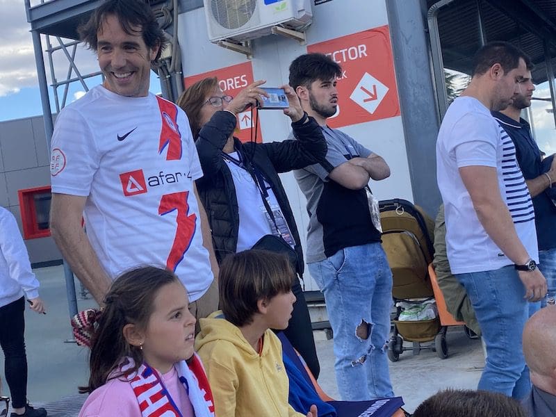 Carlos Bonet (Vecinos por Majadahonda) y Paloma Arancibia junto a un grupo de aficionados del Fútbol Walking del Rayo Majadahonda