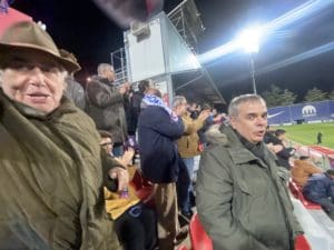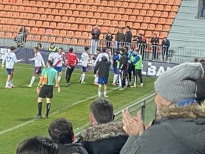 Exito de los fuegos artificiales navideños: se dispararon cuando salían los primeros jugadores del banquillo al campo y fueron un inesperado espectáculo muy aplaudido