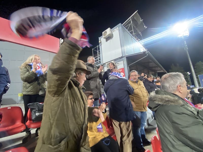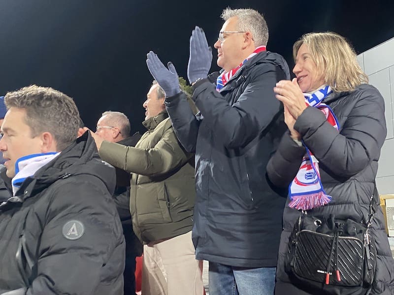 Exito de los fuegos artificiales navideños: se dispararon cuando salían los primeros jugadores del banquillo al campo y fueron un inesperado espectáculo muy aplaudido