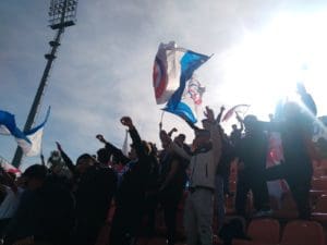 Numerosos periodistas y cronistas deportivos acudieron a ver al Tenerife en el Cerro, ya que era el equipo con mejores números como visitante. En la imagen, los majariegos Marcos Pelluz y Nacho Pérez González