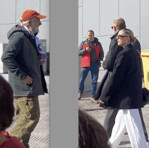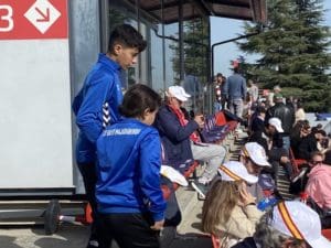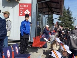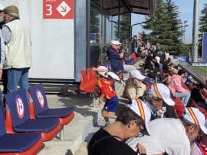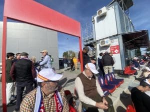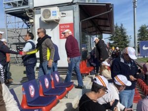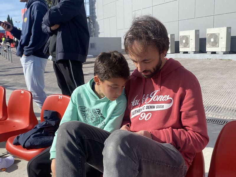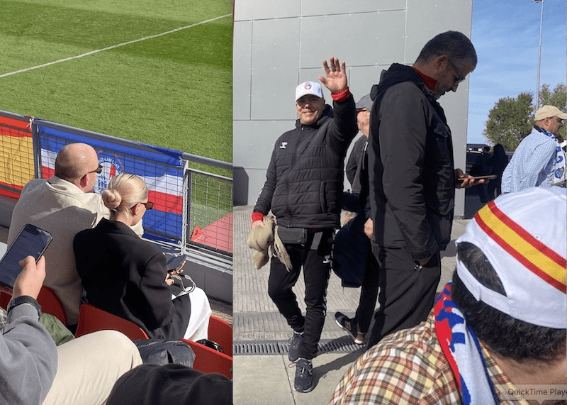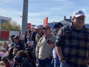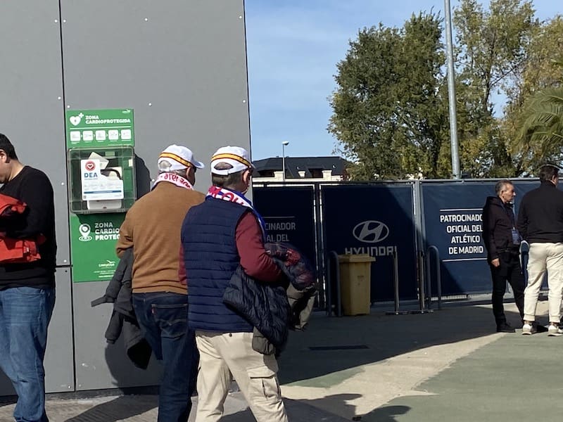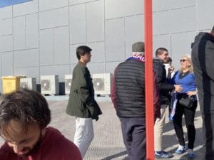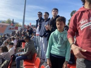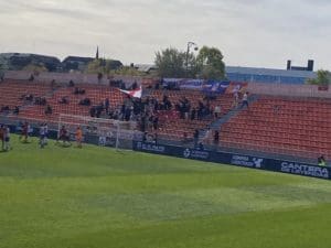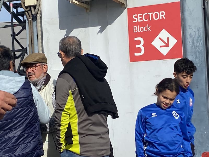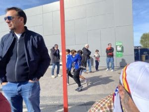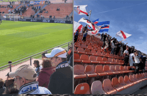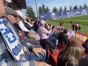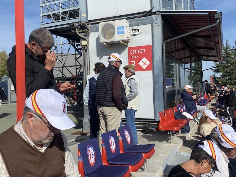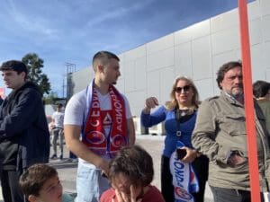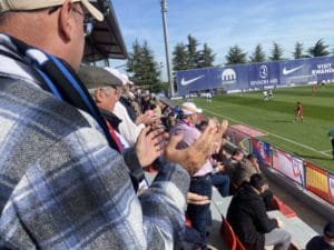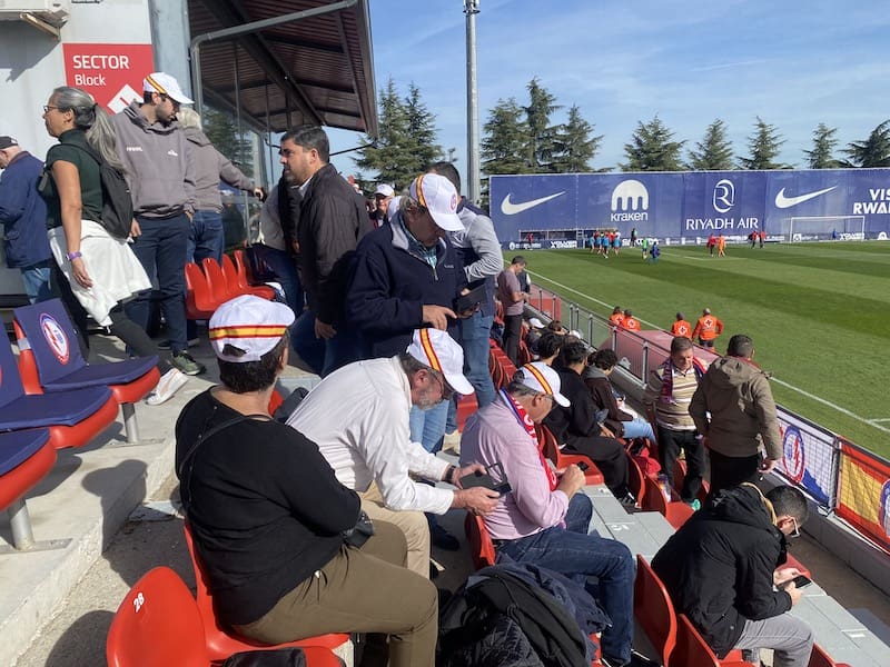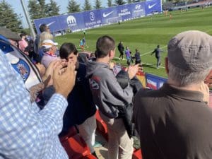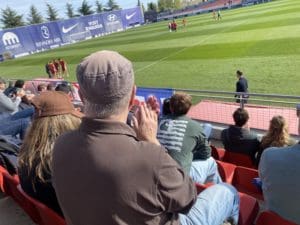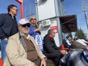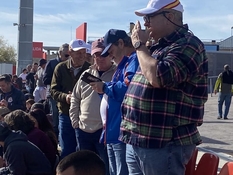 José Estévez, leyenda majariega como ex futbolista rayista, aplaudiendo al equipo junto a sus amigos de «peña»