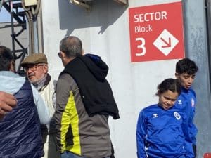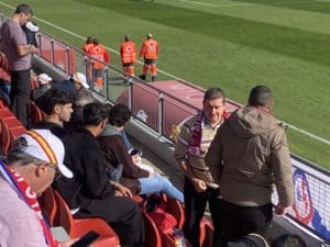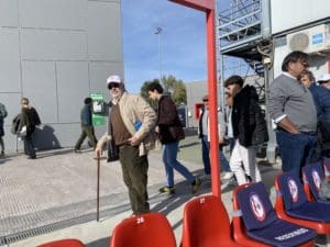 Numerosos periodistas y cronistas deportivos acudieron a ver al Tenerife en el Cerro, ya que era el equipo con mejores números como visitante. En la imagen, los majariegos Marcos Pelluz y Nacho Pérez González