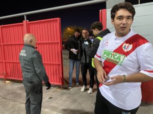 El periodista y analista rayista Marcos Pelluz con una de sus camisetas, en este caso la «clásica», una pieza de coleccionista