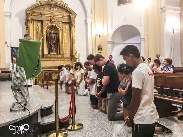 JULIA BACHILLER. Alfonso Rodríguez Padilla, vicario parroquial de Santa Catalina de Majadahonda, partirá a Roma este jueves de romería con un grupo de 20 jóvenes pertenecientes a la parroquia. Para todos aquellos que desconozcan el sentido de la palabra romería, viene de romero, nombre que designa a los peregrinos que se dirigen a Roma, lugar elegido en el que pasarán 10 días. En estos días visitaran el Vaticano, la tumba del apóstol San Pedro, las catacumbas, así como todos los lugares emblemáticos que posee esta gran ciudad. Este viaje está costeado por ellos mismos, ya que uno de sus principales ingresos lo obtuvieron estas Navidades con la rifa de los Belenes realizados por el párroco Juan Francisco Pérez Ruano y que tanto éxito tienen en esas fechas. El alojamiento se produce en una parroquia de Roma, lugar donde también realizarán actividades. El viaje en avión así como su manutención durante este tiempo lo cubre el dinero recaudado. Con motivo de esa peregrinación, en la parroquia conmemoraron una eucaristía, como puede apreciarse en las imágenes que adjuntamos.