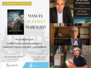 LIDIA GARCIA. El escritor Manuel Hurtado Marjalizo presenta en Majadahonda su nueva novela, «El último secreto de Matías Zimmermann«, este miércoles 5 de noviembre (2025), a las 19.00 horas, en la Sala Polivalente de la Biblioteca Municipal Francisco Umbral de Majadahonda, junto a Emilio Pacheco, dramaturgo, y Federico Utrera, escritor y periodista. «El último secreto de Matías Zimmermann» es una novela de dobles identidades y giros inesperados que, a un ritmo trepidante, lleva al lector de Madrid a París, Berlín o Málaga y de la Primera Guerra Mundial en Europa a la España de los años cincuenta. En esos albores, Fabián Aguilera, un joven de vida disoluta que quiere abandonar Madrid, ve en la plaza que hay que cubrir en el Consulado de París, una oportunidad para cumplir sus sueños. Pero su traslado no tiene nada de casual y, tan pronto llega a la capital francesa, se ve envuelto en un plan urdido por los países aliados para tener acceso a los planes del káiser Guillermo. Muchos años más tarde, el moribundo Matías Zimmerman contrata al ex policía Federico Andrade para que encuentre a una vieja conocida de la que tan solo guarda una antigua foto frente a la puerta de Brandeburgo. A cambio, Zimmermann le desvelará un secreto que jamás hubiera podido imaginar, informa la editorial La Esfera de los Libros. leer más…