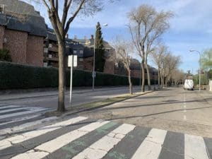 Avenida de los Claveles, donde se produjo el accidente con 3 colegios: Engage, Bousoño y Rosalía de Castro, más los Juzgados, salidas de garajes, etc…
