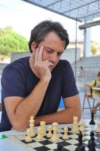 TOMÁS HERNÁNDEZ. Enero 2017. Tras seis jornadas disputadas El Molinillo sigue invicto y empatado a puntos con el Pozuelo, segundo clasificado que también ganó. Fue otra jornada vibrante la que se vivió en la sede del Colmenarejo Chess, en la que influyeron en el curso del encuentro las tácticas de equipo. En el tablero 6, Ricardo Torrijos empezó con posición ventajosa pero pasó de dos peones de ventaja a complicarse la posición y verse obligado a forzar las tablas para asegurar el primer medio punto. Alberto Corbinos consiguió salvar un final comprometido: tenía un peón de menos pero con un buen salto de caballo logró forzar las tablas. Santiago Lucendo, que esta temporada lleva cinco victorias y unas tablas en seis partidas, ganó a su rival gracias a consolidar un peón de ventaja que consiguió en la apertura. Con el resultado de dos a uno para El Molinillo, comenzaron a aflorar los nervios y a influir las órdenes de equipo.