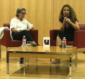 La escritora Amparo Trujillo, acompañada de Carmen Resino, durante la presentación de su obra «Bágoa azul» en Majadahonda
