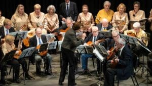 SU DISCURSO ENCAJA A LA PERFECCIÓN CON LAS CLAVES QUE EXPLICAN LA LONGEVIDAD DE MAJADAHONDA: vida social activa, participación comunitaria y una amplia oferta de actividades. “El club que tenemos es el mejor de España”, afirma. “Hay una variedad de personas increíble y una implicación enorme”. Ana acude a ensayos varios días a la semana y destaca el ambiente: “Es fabuloso. Me encanta ir”. La música, además, ha sido para ella un refugio en los momentos más difíciles. Cuando su marido enfermó de alzhéimer, encontró en el canto y en el ritmo una forma de sostenerse emocionalmente. “La música me ayuda mucho”, confiesa. Ese apoyo, sumado a la rutina y al vínculo con otras personas, le permitió seguir adelante sin aislarse ni perder el contacto con la vida social. Ana lanza un mensaje claro, casi como un consejo de vida para todos: “Es muy importante no quedarse en casa y moverse”. Lo dice alguien que, a sus 92 años, sigue ensayando, bailando y visitando residencias para acompañar a otros mayores. “Me alegro mucho de que haya personas tan majas y de que la gente quiera venir a bailar”, añade. Así, Ana Gilarranz insiste en que la longevidad, más allá de la genética o el entorno, también se construye a base de música, comunidad y ganas de seguir participando en la vida. Donde ella, la de las castañuelas, es toda una maestra.