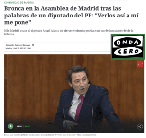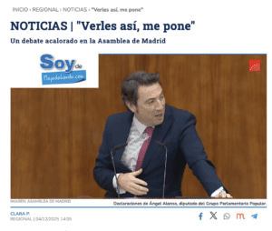MARIANA BENITO. (Majadahonda, 6 de diciembre de 2025). Titulares en la prensa, programas y noticias en radio y televisión, las redes sociales echando humo… El ex concejal del PP en el Ayuntamiento de Majadahonda y ahora diputado en la Asamblea de Madrid, Angel Alonso, ha tardado «solo» 2 años en hacerse famoso en su nuevo puesto en la política regional. Y ha sido precisamente por su oratoria, lo más valorado en la política municipal, pero esta vez le ha jugado una mala pasada. El hecho sucedió este jueves 4 de diciembre cuando se debatían los Presupuestos regionales y Angel Alonso le respondió a la diputada de Más Madrid, Manuela Bergerot, que «le pone» verla enfadada, a ella y a todo su grupo parlamentario, cuando responden con algaradas desde sus escaños a sus discursos, a lo que la parlamentaria respondió que decir eso era «violencia política» contra las mujeres. Y aunque Angel Alonso explicó que «le pone» quiere decir «me gusta», lo cierto es que la Oposición ha querido ver en la metáfora erótica una alusión de carácter sexual, lo que ha desatado ya una torrentera de comentarios y viñetas en las redes sociales, algunas de ellas con mucho humor. La frasecita ha hecho fortuna, pues ha sido recogida por radios como Onda Cero y la Cadena SER, televisiones como La Sexta y periódicos como El Español, El Periódico de España, Infobae o Soy de Madrid, entre otros muchos. Y este es un resumen de ellos.