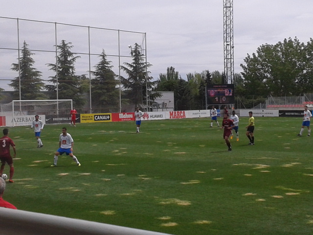 El Rayo Majadahonda sigue líder a falta de dos jornadas tras la victoria de los de Antonio Iriondo frente al “Inter” de Pablo López, el ex entrenador majariego que se juega también los “play off” del ascenso a 2ªB. El “morbo” llenó el Cerro del Espino y el partido de fútbol se transformó en una partida de ajedrez: los rayistas, con un jugador menos por expulsión de Quique Vázquez pero con un gol tempranero de Katime tras jugadón de Portilla, defendían con la posesión del balón gran parte del tiempo. Los de Pablo López, con similar parsimonia, nervios de acero y cabeza fría, manoseaban sus ataques esperando el zarpazo final. El encuentro, a un nivel de tabla media de primera división o alta de segunda, no tuvo respiro desde el minuto 1 al 90, pero finalmente las intervenciones del portero rayista Miguel Angel y la escasa fortuna y puntería del Inter impidieron que se consumara la tragedia para los locales y la alegría de los visitantes.