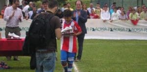 Rodri recogiendo un premio cuando era tan solo un niño con el Atlético de Madrid en el Cerro del Espino de Majadahonda