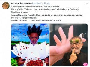 Esta octava edición del taller que dirige el profesor Federico Utrera aborda la faceta exclusivamente audiovisual del polifacético dramaturgo, cineasta y artista tras los ya dedicados al Mass Media Art, Julian Rosefeldt, Yoko Ono, Michel Houellebecq, Nam June Paik, Bill Viola y Wolf Vostell. La propuesta reside en combinar la biografía de Arrabal para decodificar las distintas etapas y facetas de su obra audiovisual. Para todas sus películas Arrabal escribió los guiones, pero también ha sido actor en muchas de ellas y ha participado en otras tantas obras, también como guionista o actor, realizadas por directores de cine de Canadá, Francia, Alemania, México, Italia y España.