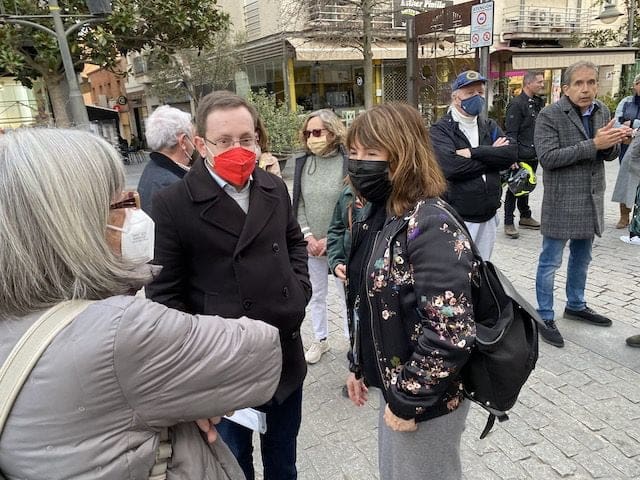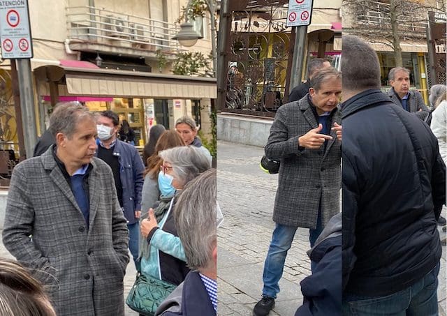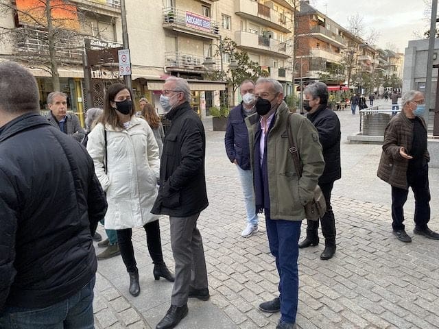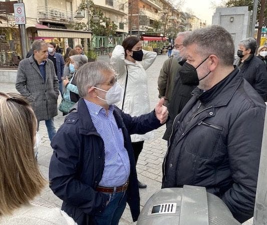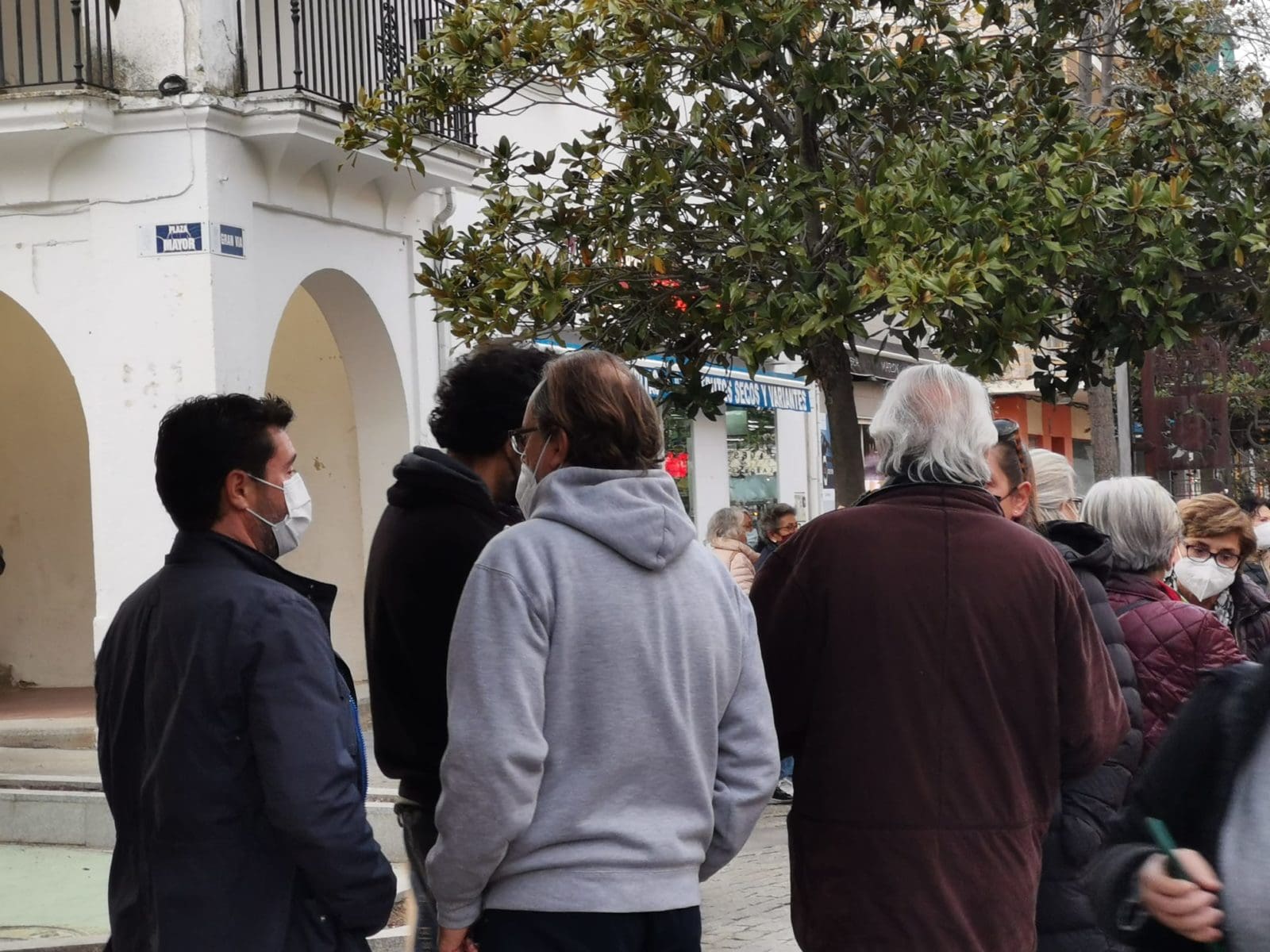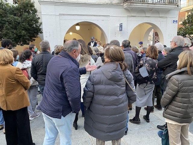 JULIA BACHILLER. La Comisión de Usuarios Afectados por el Cierre de la Piscina de Huerta Vieja se congregó este viernes 11 de febrero (2022) a las 18:00 horas frente al Ayuntamiento de Majadahonda y su portavoz, que se dirigió a los asistentes desde uno de los arcos de la plaza del consistorio, quiso finalizar su intervención agradeciendo el interés prestado por los partidos de la Oposición, tanto PSOE como Ciudadanos, que en consideración de estos representantes, «dentro de sus limitaciones de acceso a la información dentro del Ayuntamiento», les están sirviendo «de apoyo y asesoramiento». También Vecinos por Majadahonda y Centristas estuvieron en la concentración y mantuvieron reuniones con los responsables de la Comisión, así como varios directivos de la Asociación de Clubes y Deportistas de Majadahonda (ACDM), que respaldaba la convocatoria. Incluso acudieron representantes del partido Más Madrid, así como destacados miembros de la sociedad civil de Majadahonda, momento que recogieron las fotografías y un vídeo del acto.