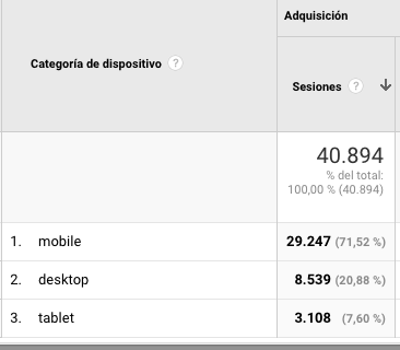 Google Analytics: por este auditor sabemos que nos siguen un 54% de hombres y un 46% de mujeres, que cada mes tenemos un 64% de nuevos visitantes que nos conocen y que fidelizamos a un 35% de los que nos visitan, cifra que ha crecido exponencialmente desde que salimos con un 4%. Deportes, tecnología, alimentación, bebidas, cocina, viajes, turismo y cultura son sus preferencias. El 60% tiene menos de 35 años y el 40% más de esa franja de edad. En esta última son mayoritarios los menores de 45 y hay un 5% de mayores de 65 años que nos sigue. Nos leen, nos oyen y nos ven por móvil un 71%, un 21% por ordenador y un 8% por tableta. Apple, Huawei, Samsung y BQ son sus marcas preferidas y un 94% nos siguen desde España, siendo el segundo país EE.UU y el tercero Reino Unido, el cuarto Perú y el quinto Colombia. Google afirma que nos leen en 91 países, que el 64% está en Majadahonda y Madrid, pero que tenemos seguidores en Pozuelo (6%) y Barcelona (3%) como lugares más significativos, pero también en Valencia, Las Rozas, Valladolid, Sevilla, Málaga y Alcobendas.
