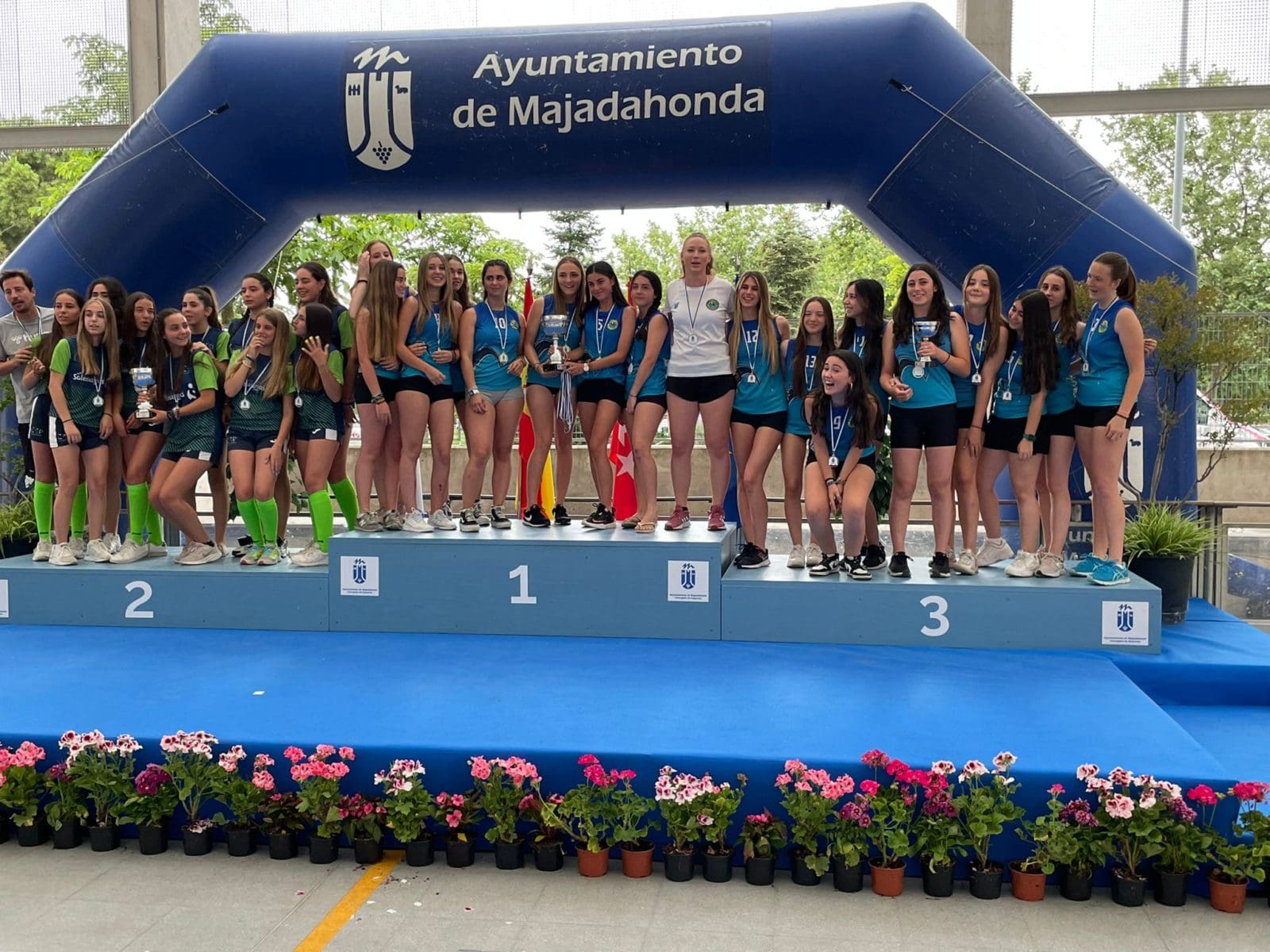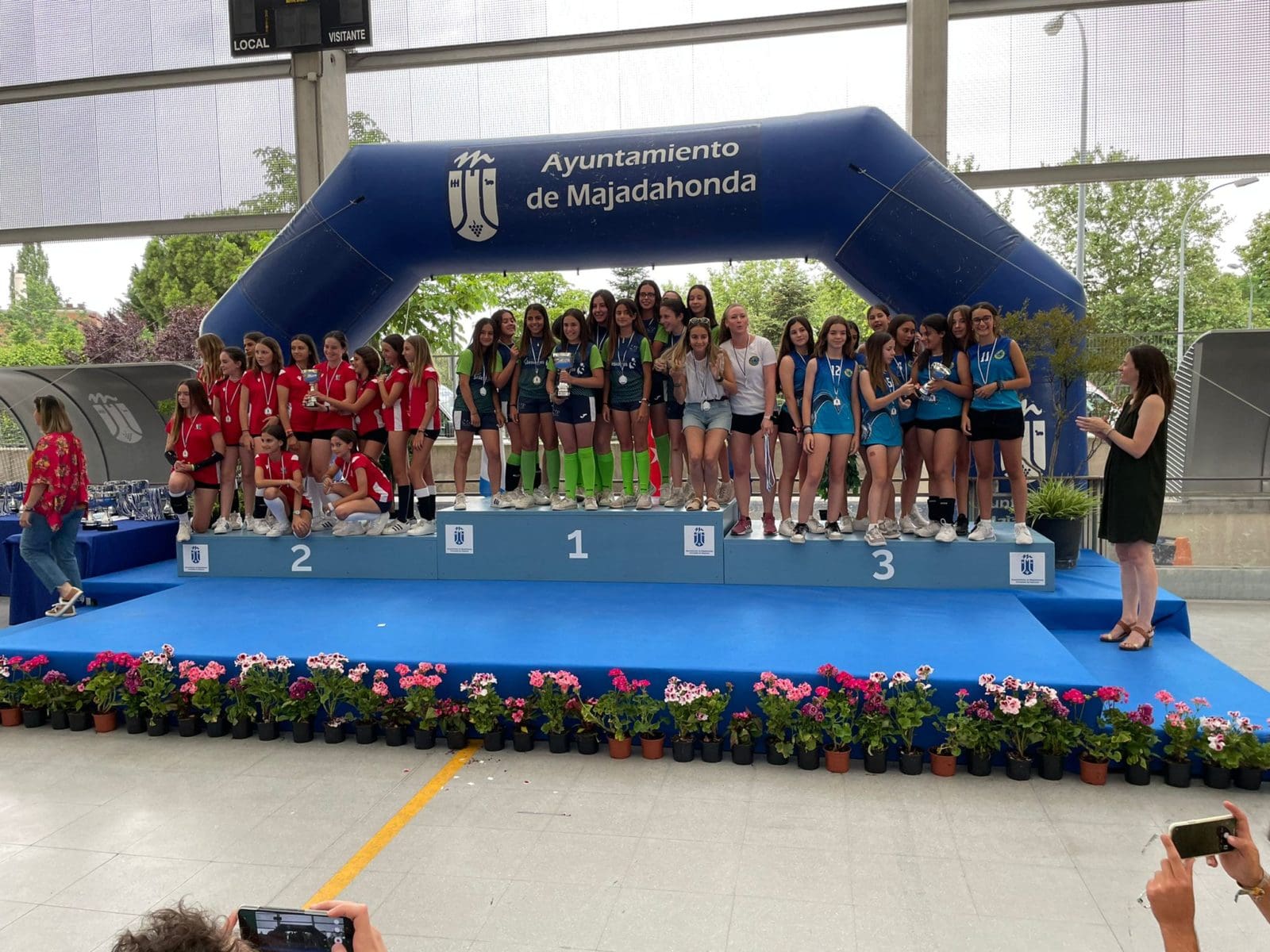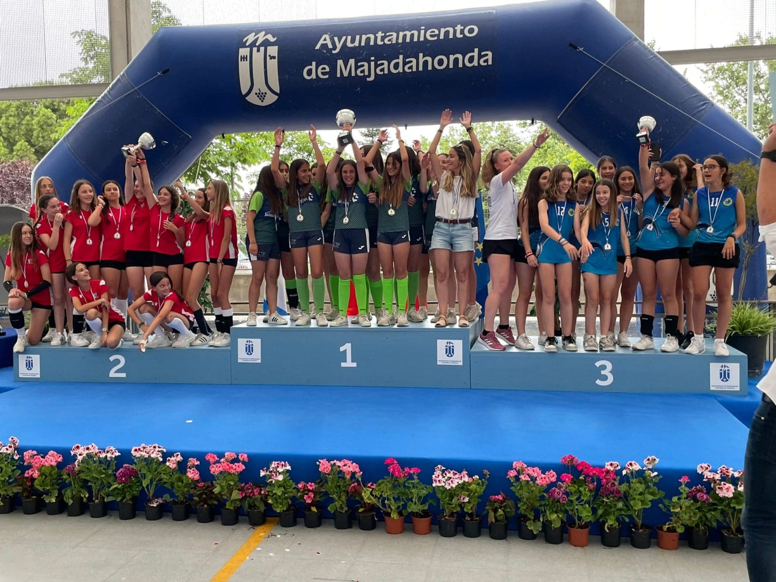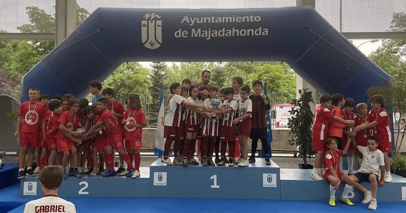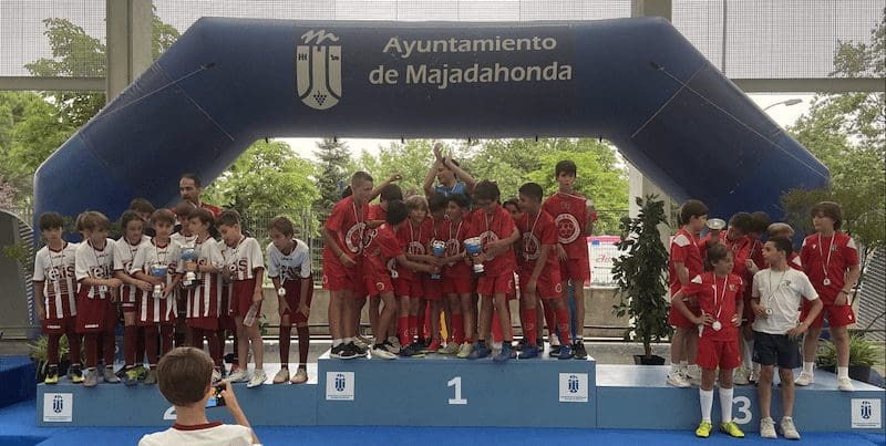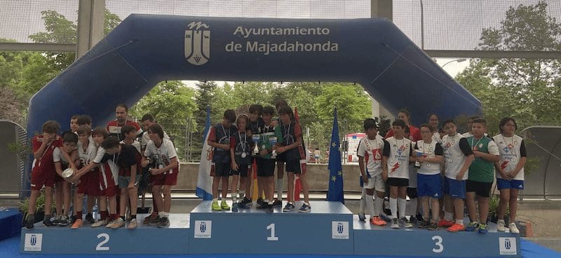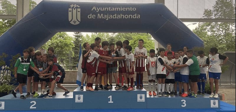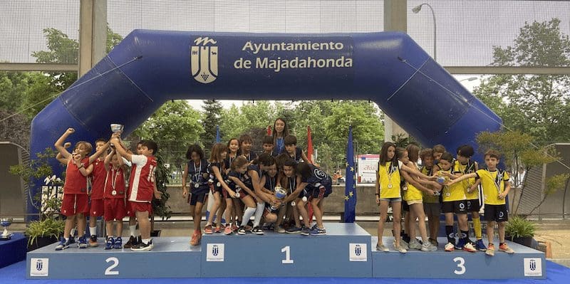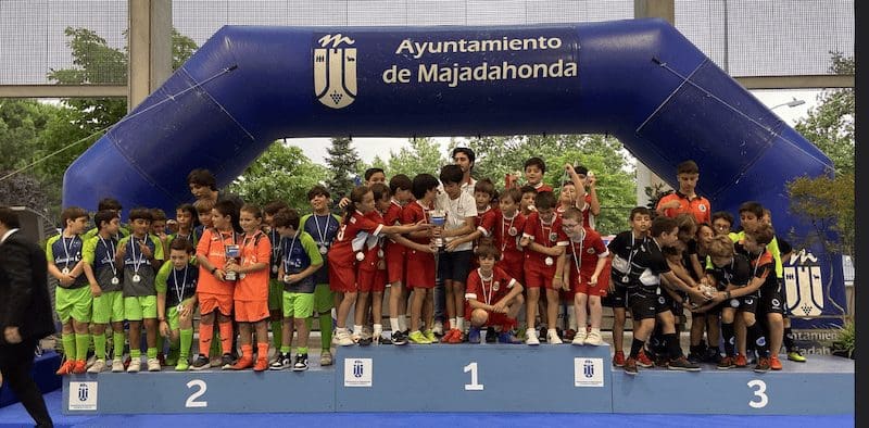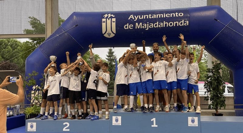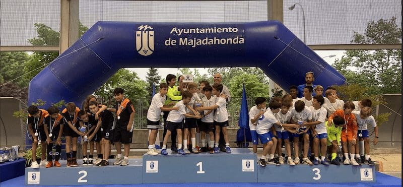 LIDIA GARCIA. Un total de 800 jugadores, con edades comprendidas entre los 6 y los 17 años, pertenecientes a 62 equipos de 5 deportes (baloncesto, voleibol, voley playa, fútbol sala y fútbol 7) vinculados a centros educativos o escuelas deportivas de Majadahonda recibieron este jueves 16 de junio (2022) sus premios como campeones o finalistas de los Campeonatos Escolares 2022. Los campeones de liga de Fútbol 7 fueron Rayo Majadahonda D (cadete), Rayo Majadahonda G (infantil), Club Torcal (Alevín) y Sagrado Corazón (Benjamin). La Copa se la llevó el Rayo Majadahonda G, que hizo «doblete» (infantil) y el Rayo Majadahonda I (alevín). En Fútbol Sala los campeones de liga fueron el Engage (alevín y benjamín 4º) y el Everest (2ºB), mientras que la Copa se la llevaron el Benito Pérez Galdós (alevín) y El Tejar 4º (benjamín). La liga y la copa de Baloncesto este año fue para el Benito Pérez Galdós tanto en alevines como benjamines, siendo finalistas el San Jaime y el Santa Catalina con podium de bronce para el Federico García Lorca. Por último, en Voley Playa ganó el CV Majadahonda RVP mientras que en el Voleibol ganó igualmente en todas las categorías de las ligas 2022, salvo en alevín, que lo hizo el San Jaime «rojo».