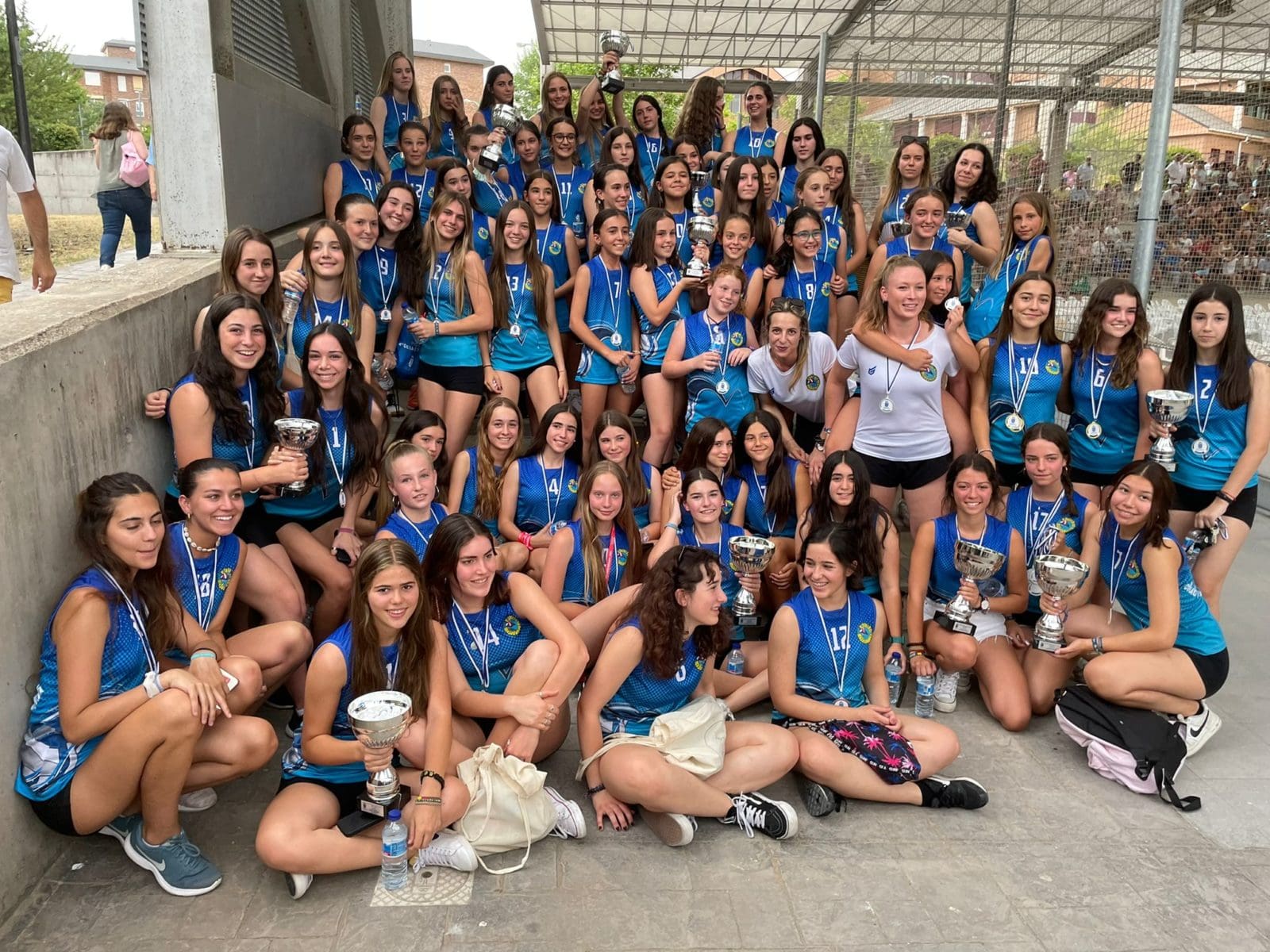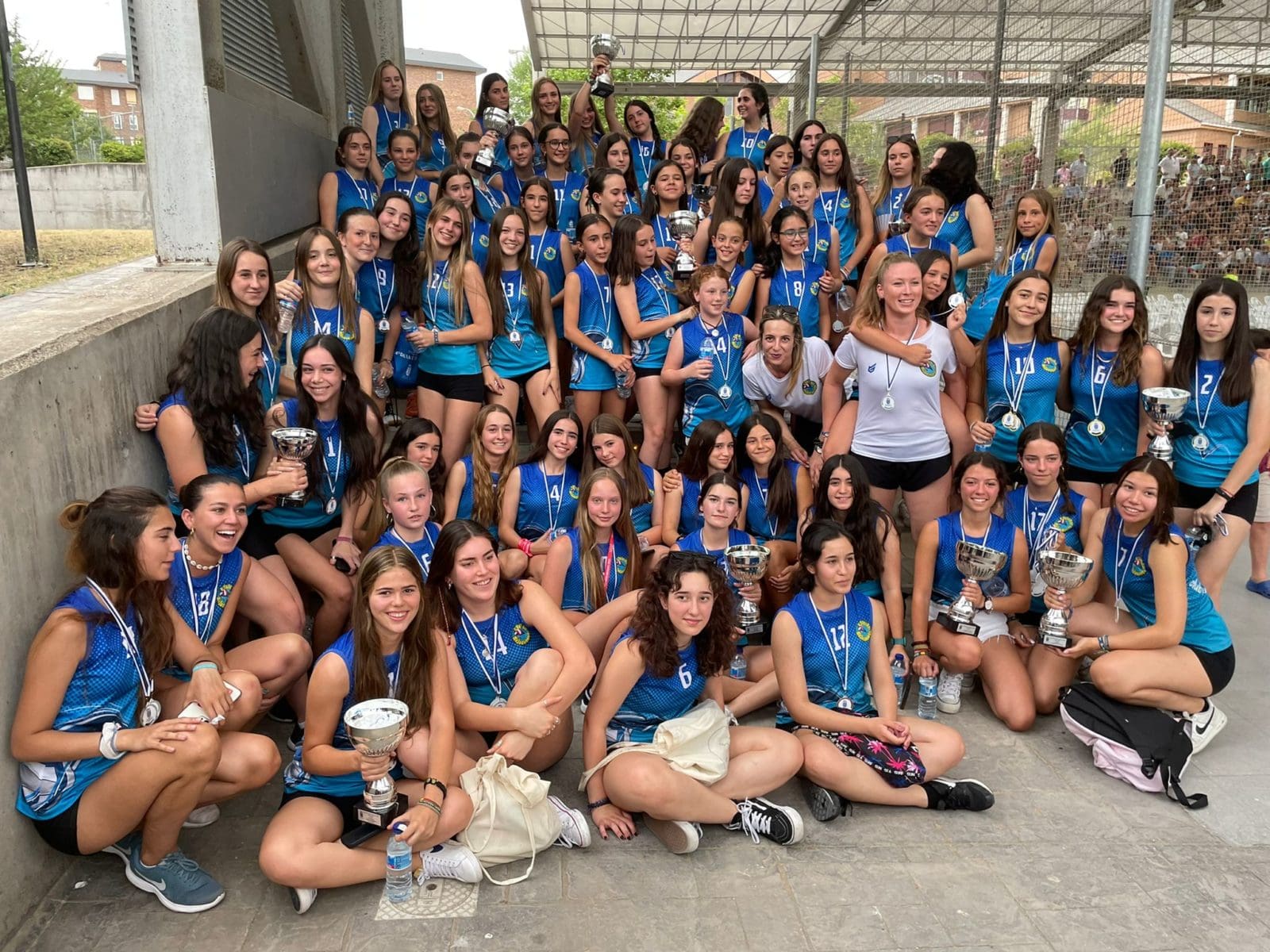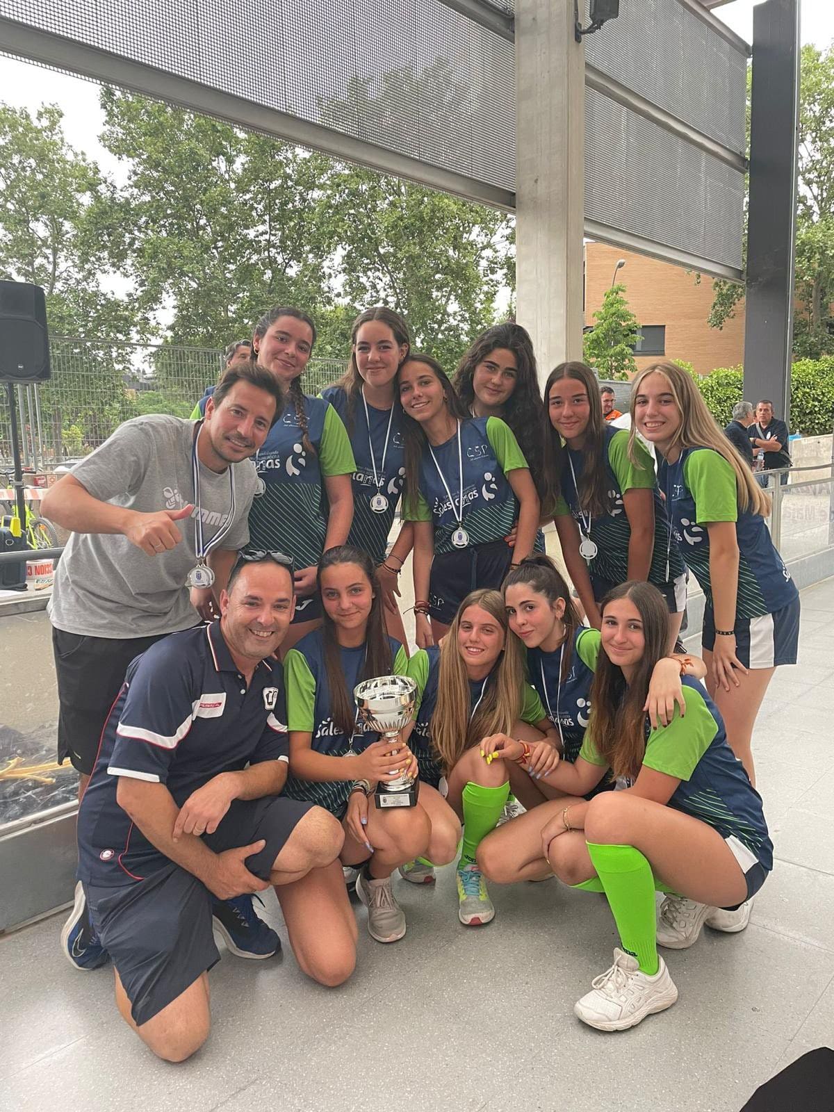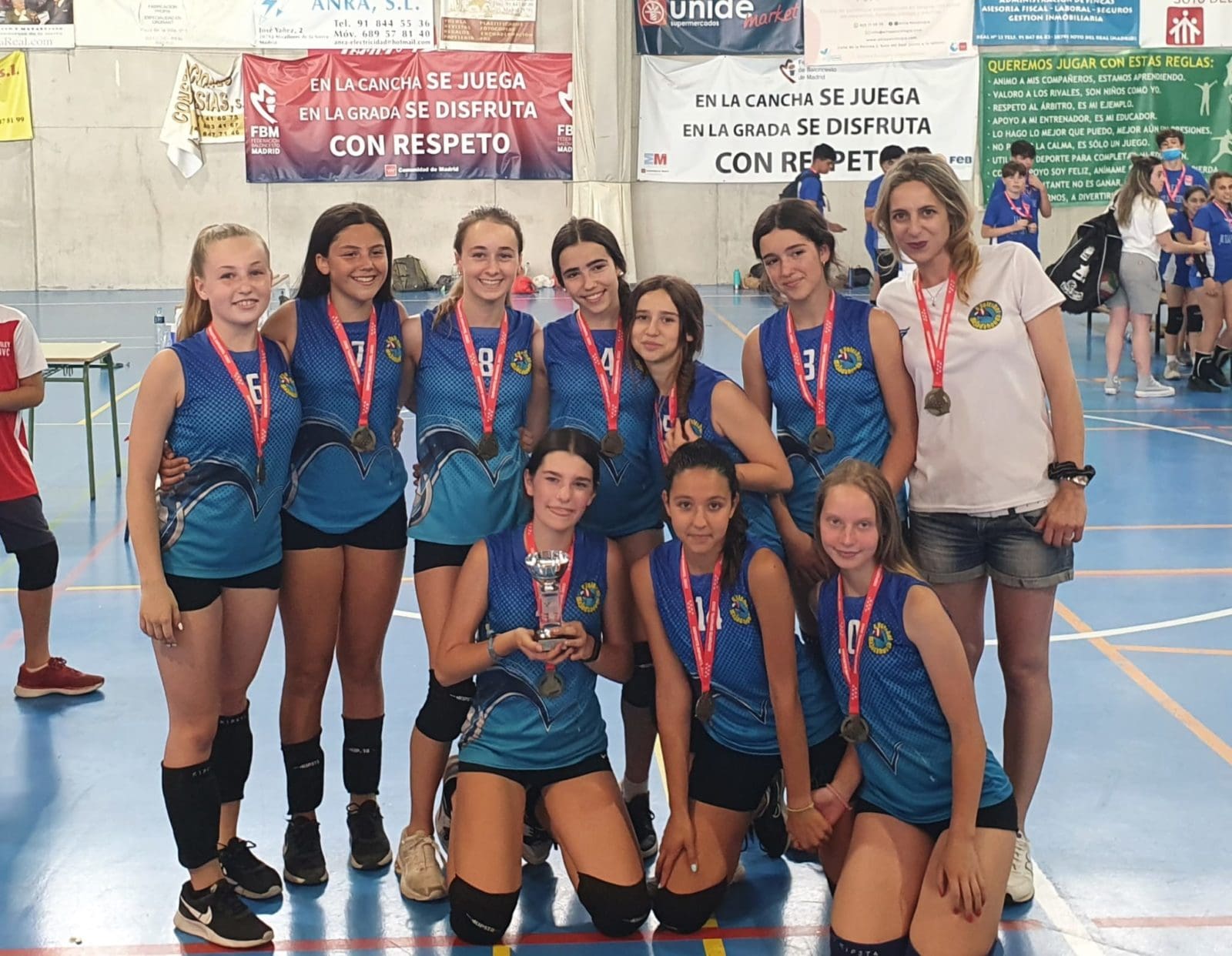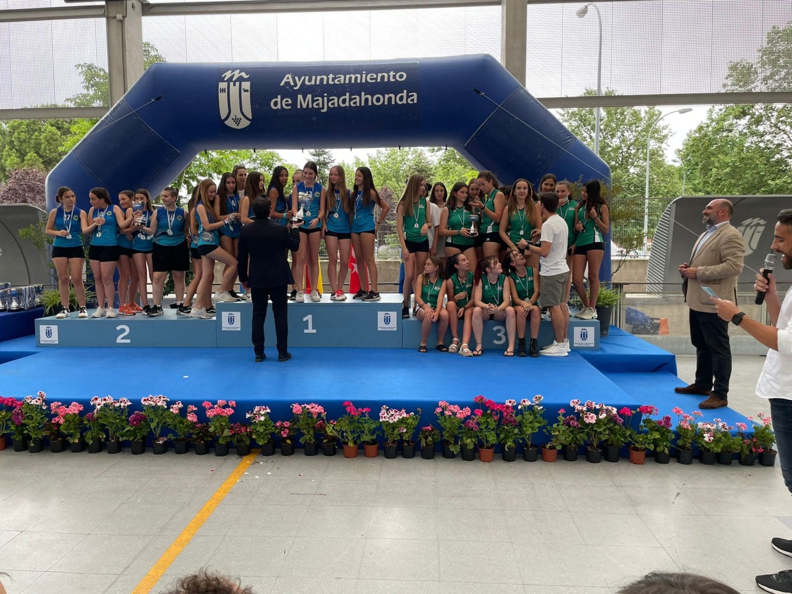 LIDIA GARCIA. Un total de 800 jugadores, con edades comprendidas entre los 6 y los 17 años, pertenecientes a 62 equipos de 5 deportes (baloncesto, voleibol, voley playa, fútbol sala y fútbol 7) vinculados a centros educativos o escuelas deportivas de Majadahonda recibieron este jueves 16 de junio (2022) sus premios como campeones o finalistas de los Campeonatos Escolares 2022. Los campeones de liga de Fútbol 7 fueron Rayo Majadahonda D (cadete), Rayo Majadahonda G (infantil), Club Torcal (Alevín) y Sagrado Corazón (Benjamin). La Copa se la llevó el Rayo Majadahonda G, que hizo «doblete» (infantil) y el Rayo Majadahonda I (alevín). En Fútbol Sala los campeones de liga fueron el Engage (alevín y benjamín 4º) y el Everest (2ºB), mientras que la Copa se la llevaron el Benito Pérez Galdós (alevín) y El Tejar 4º (benjamín). La liga y la copa de Baloncesto este año fue para el Benito Pérez Galdós tanto en alevines como benjamines, siendo finalistas el San Jaime y el Santa Catalina con podium de bronce para el Federico García Lorca. Por último, en Voley Playa ganó el CV Majadahonda RVP mientras que en el Voleibol ganó igualmente en todas las categorías de las ligas 2022, salvo en alevín, que lo hizo el San Jaime «rojo».