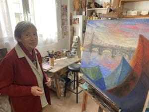¿Eres una profesional a la que le gusta reunirse con gente del propio oficio?. –Sí, sí, por supuesto, tengo buenos amigos aquí en Majadahonda, donde hay muy buenos artistas, ¿eh? Me dices Pepe Antunes pero también el doctor Manuel Martín, Encarnación o Encarnita como yo la llamo. Y Agar Blasco Perujo, que es mi hija… Cuando llegué a Italia me quedé sin habla ante los artistas italianos del Renacimiento, que yo los intuía porque algo habíamos estudiado en Bellas Artes, pero llegar a ver su obra real me cautivó, fue una sensación… Me impresionaron muchísimo los artistas italianos, Miguel Ángel con su «David» cuando lo ves allí en el Museo, para mí fue un impacto de verdad. Y la pintura del Vaticano, con Dios casi tocando con el dedo al hombre, fue impactante, de verdad. Me marcaron mucho esos años y así aprecié la pintura religiosa… ¿Tú eres creyente?. – Sí, sí, soy creyente, por supuesto. A mí me han ofrecido.., es una anécdota, te la digo: … quitar la cruz del Valle de los Caídos para poner una paloma mía. Y he dicho que no. Jamás podría poner una paloma en el sitio de una cruz. No acepté el ofrecimiento, que me hicieron los de Podemos. Cada uno tiene su fe y la libertad de pensar y opinar como quiera. Yo lo respeto pero pido también respeto para mi creencia. ¿Tú eres fumadora? –Sí, señor, pero bueno, yo tengo absolutamente prohibido el tabaco, aunque me fumo un pitillo después de comer y otro después de la cena porque me acompañan, ¿sabes?. Me relaja. He sido fumadora de puros y no me trago el humo. Hay una técnica.