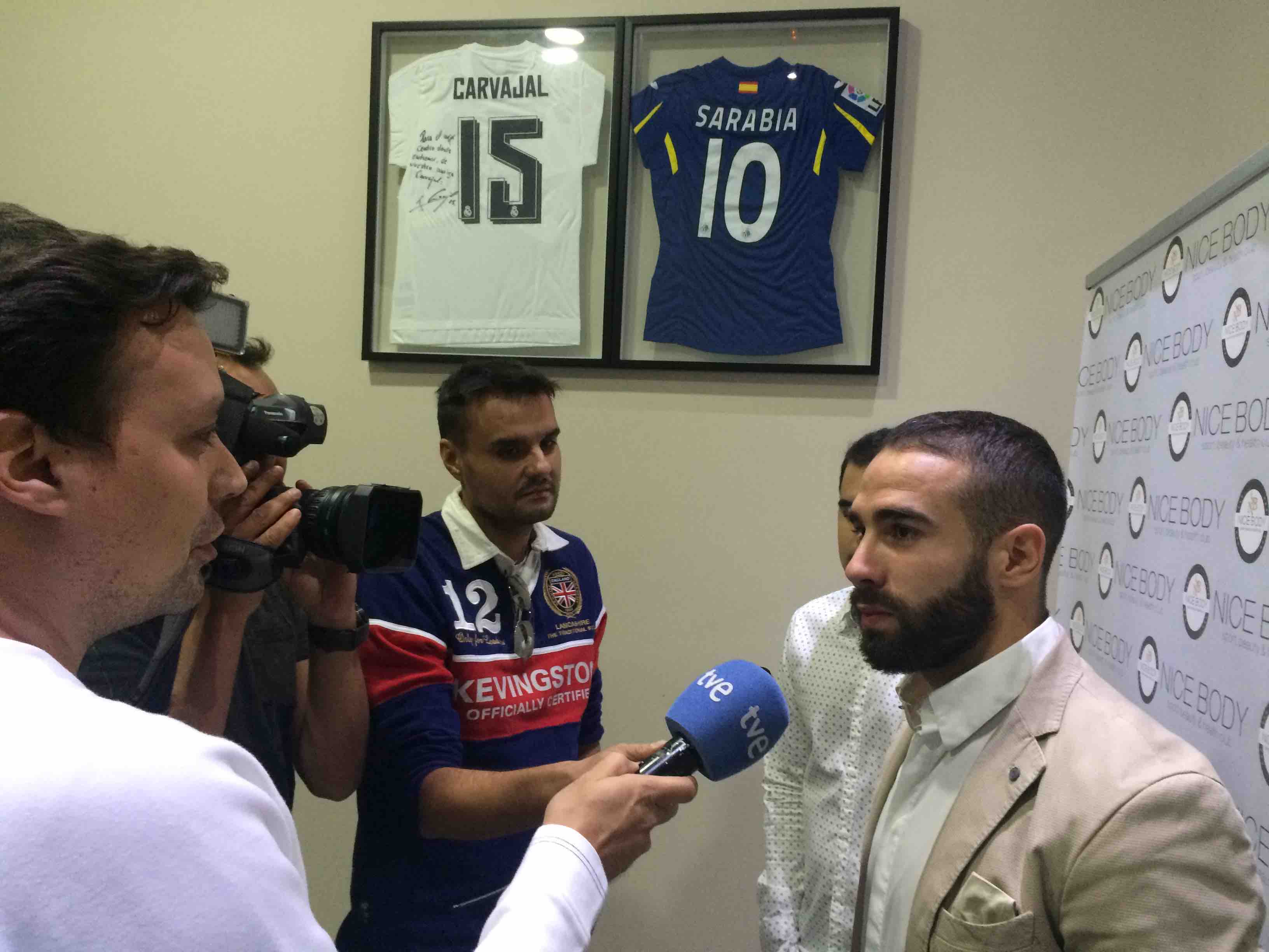 Marca (Hugo Cerezo): Carvajal y Sarabia, socios y empresarios: inauguran un centro de electroestimulación en Majadahonda. Dani Carvajal y Pablo Sarabia no sólo son ex compañeros y amigos, sino que también son socios. Su amistad, forjada en el Castilla y las categorías inferiores de la selección, se ha trasladado al mundo de los negocios. Ambos inauguran Nice Body, un centro de electroestimulación en Majadahonda (centro comercial Monte del Pilar) con el que quieren explorar una nueva faceta más allá de la futbolística. La historia de ambos viene de lejos. Desde muy pequeños, en 2004, coincidieron en las inferiores del Real Madrid y se hicieron inseparables. Cuando dieron el salto al Castilla incluso estudiaron juntos INEF, antes que sus caminos se separaran, primero Pablo a Getafe (2011) y al año siguiente Carvajal al Bayer (2012). La distancia no fue impedimento para mantener una relación que se reforzó cuando coincidían en la sub 21 y que pervive a pesar de la rivalidad, puesto que ya se han medido como adversarios, la última vez, sin ir más lejos, en la Supercopa de Europa en Noruega, la noche en la que Carvajal salió por la puerta grande. De hecho, comparten vacaciones y organizan de manera conjunta un campus para niños en verano. Ese interés por la preparación física que les llevó a apuntarse juntos a la Universidad se traslada ahora a este proyecto que aglutina deporte, salud y belleza enfocado a la electroestimulación, la que ambos practican como complemento a su trabajo físico”.