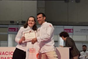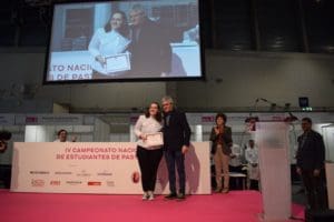 Claudia Herranz recibiendo su galardón: ha puesto el nombre de Majadahonda y del María de Zayas en la primera línea y élite de la Pastelería de España: «Sinceramente, mis profesores, en concreto Marta Loya, que fue quién me preparó para el concurso, es una persona tan perfeccionista y trabajadora ayudándote, que en ocasiones es duro, pero merece mucho la pena»