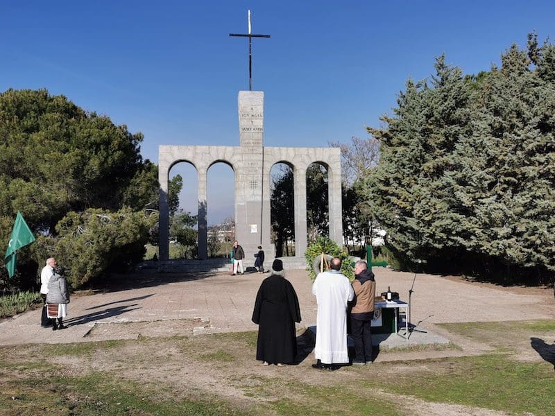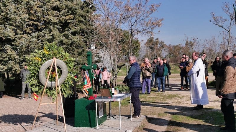 JULIA BACHILLER. La «Asociación Custodia Monumento a Legionarios Rumanos Caídos en Majadahonda» rindió este sábado 14 de enero (2023) su tradicional homenaje en memoria de Ion Mota y Vasile Marin, miembros de la Guardia de Hierro rumana, fallecidos en 1937 en la localidad de Majadahonda durante la guerra civil española de 1936-39. A las 12:00 horas y con una asistencia menor a la de años anteriores, daba comienzo el acto y una vez más el monumento se mostraba limpio de las habituales pintadas a las cuales se ve sometido durante el resto del año. También llamó la atención la limpieza de la pequeña plazoleta frente a él que habitualmente se encuentra muy degradada por los efectos del «botellón» y los vertidos. Destacó la ausencia de banderas anticonstitucionales (bicolor española con el águila imperial), aunque los asistentes recordaron que son igualmente inconstitucionales las banderas tricolor republicanas que se utilizan en otros actos de su ideología adversa. Lo cierto es que tan solo se portaron dos banderas de Rumanía con el antiguo «lobo dacio«.