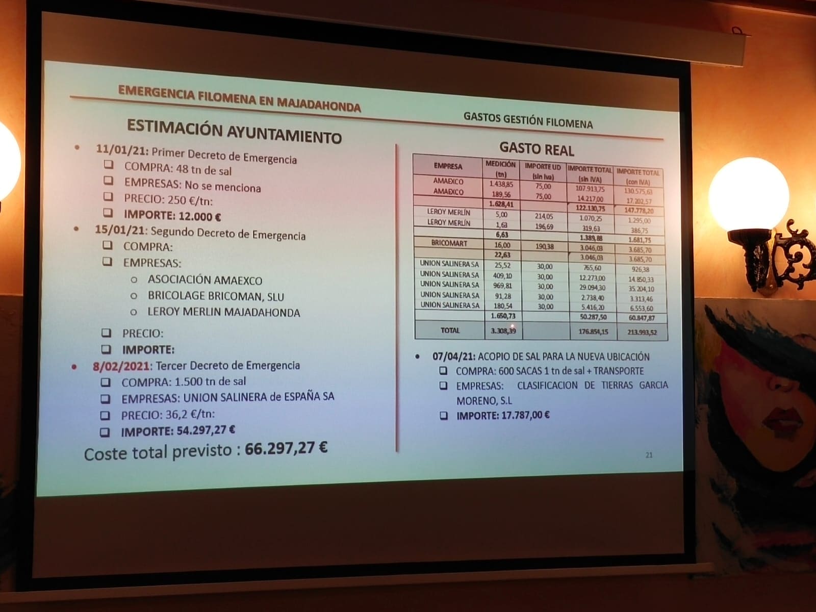 Una de las imágenes de la presentación con las cuentas de «Filomena»