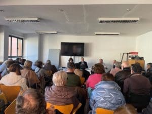 El protocolo establecido aquel 18 de marzo de 2020 era muy tajante, informando sobre la medicalización de las residencias, pero la realidad es que no fue efectiva. A los residentes que estaban graves, los dejaron internados, acelerando por tanto su fallecimiento. Cuando un médico de atención primaria te maneja en el hospital es porque estás muy grave. Si te envía a casa es que eres un enfermo crónico. Para terminar, el ex consejero puso el ejemplo de Quebec (Canadá), que lo hizo muy mal. En cambio en otros Estados lo hicieron de otra forma y mejor: pusieron oxigeno-terapia medicalizando las residencias. Sólo se envió al hospital al 5% y murió el 60%. En cambio en las residencias, sólo murieron el 30%. Quedó demostrado así que la medicalización de residencias resultó mucho más efectiva¡ En el «turno de preguntas«, una asistente comenta que tuvo neumonía en el pulmón izquierdo. El farmacéutico le denegó su asistencia por protocolo. Apoya la investigación para que se depuren responsabilidades. La segunda pregunta es de Santiago del Real, concejal de C’s, que comenta su punto de vista sobre la experiencia sufrida en la pandemia. En mi caso pregunto por el motivo de colocar a un filósofo como ministro de Sanidad y por qué el Gobierno tardó tanto tiempo en reaccionar, permitiendo las manifestaciones del Día de la Mujer el 8 de marzo con el riesgo de contagio. Mercedes Pedreira hizo mención al desastre a nivel de Congreso de los Diputados y propuso que se trasladase el debate a los centros escolares como futuros mayores. Y Antonio, maestro jubilado, comentó el caso de la provincia de Segovia, con asistencia de urgencia deficiente a los mayores.