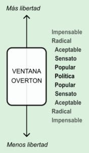LA «VENTANA DE OVERTON» Y LAS «POLÍTICAS ACEPTABLES». Se denomina “ventana de Overton” (propuesta por Joseph P, Overton) al rango de políticas aceptables que, en cada momento, un candidato puede plantear electoralmente, sin ser considerado por la opinión pública como excesivamente radical o extremo. Lo curioso es que aunque las ideas woke están fuera del sentido de la realidad, la ausencia de un discurso racional contrario en los medios de comunicación y el mundo del intelecto/cultura (convertidos en meras cajas de resonancia repetitiva) y la claudicación por parte de la derecha moderada y los CEO del gran capital (afectados por un síndrome de Estocolmo), empuja a que sean parte del pensamiento aceptable (sin ninguna deliberación), ampliando la ventana de Overton. En las próximas semanas mostraré mi réplica a cada una de esas propuestas identitarias. Lo haré con argumentos racionales y movido por el deseo emocional de evitar una sociedad sin sentido de la realidad y sumida, al final, en la decepción; pues como dice mi buen amigo Joan P. –un hombre sabio–, “toda decepción no es más que el interés acumulado de un autoengaño”.