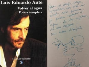 «A partir de ahí tuvimos cierto contacto, culminado con su actuación como poeta en junio de 2008, en Madrid, Casa de Galicia, adonde lo llevé cuando yo tenía mando en plaza, poético, entiéndaseme, en dicho lugar. Aute en la instántanea de aquella noche, junto a María Lado, Ramón Jiménez y yo mismo»