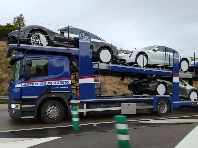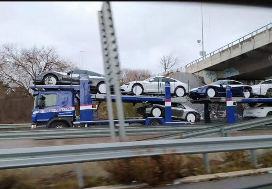 EL CONCESIONARIO DE MAJADAHONDA, «PRIMERA REMESA DE ENVÍO DESDE ALEMANIA». «Avistamos en las carreteras de la Comunidad de Madrid un camión con varias unidades de producción del Porsche Taycan. Sabíamos que había varias unidades del Porsche Taycan en Madrid gracias a la publicación que Tomás Villén, CEO de Porsche Ibérica, había realizado en su perfil público de Twitter. Pero, al o a los los ejemplares matriculados en Alemania se podrían unir los que esta mañana hemos podido fotografiar en el entorno de uno de los concesionarios de la firma situados en la zona noroeste de la Comunidad de Madrid. Las expectativas de la firma de Stuttgart para con este modelo, el primero eléctrico 100 por 100, han superado todas las previsiones y, de hecho, desde la cúpula directiva se muestran, incluso sorprendidos», señala el periodista. Ahora queda por conocer la fecha en que las primeras entregas a los particulares que procedieran a efectuar la reserva de uno de ellos comiencen a ser efectuadas por lo que, los Porsche Taycan vistos en Majadahonda «bien pudieran ser parte de esta primeras remesas de envíos desde la fábrica situada en la localidad de Zuffenhausen», concluye.