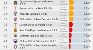 «La transparencia se ha convertido desde hace algún tiempo en un factor muy importante para el público. Es un índice muy usado en política (es más fácil confiar en un partido abierto y transparente) o marketing, y su aparición en el mundo del fútbol resulta sorprendente. Los dos peores clubes en transparencia del fútbol español son el Extremadura (7 indicadores, 7,61% de transparencia) y el Rayo Majadahonda (6 y 6,52%), ambos recién ascendidos a Segunda. El Reus, pese a su colapso institucional, está por delante de ambos (puesto 37 con 19 indicadores cumplidos, 20,65% en transparencia)», detalla BeSoccer al tiempo que señala que este estudio realizado por la plataforma Dyntra, determina que los clubes más transparentes son Real Madrid y Osasuna.