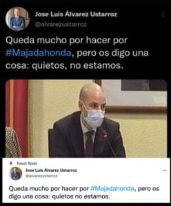 JULIA BACHILLER. Esta es la historia de un alcalde «en coma«, dicho sea con todo el humor posible y deseándole al de Majadahonda que tenga muy buena salud. José Luis Álvarez Ustarroz publicaba en su cuenta de Twitter este viernes 28 de enero (2022) un fragmento de video con una de sus intervenciones en el último pleno y desde el primer momento que fue colgado ya suscitó un comentario por incluir una coma en un lugar inadecuado. El encabezamiento del vídeo decía así: “Queda mucho por hacer por Majadahonda, pero os digo una cosa: quietos, no estamos”. El error ortográfico, que fue subsanado en cuanto surgieron los primeros comentarios sarcásticos, viene a resaltar la importancia de situar correctamente este signo ortográfico de puntuación, ya que puede cambiar incluso el sentido o significado de un texto. Con o sin coma, el mensaje obtuvo 23 «likes» y 14 «retwitts«, así como más de 750 visualizaciones. ¿Todo por una coma mal puesta?. Por desgracia, no fue solo eso. Varios seguidores se percataron del contenido del video y lo notificaron a MJD Magazin. Y con ello no nos referimos a su literalidad sino a su edición.
