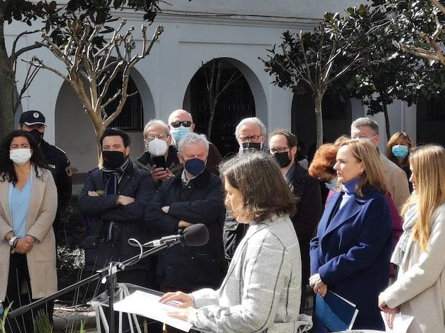 JULIA BACHILLER. El Día Internacional de la Mujer se celebró en Majadahonda este martes 8 de marzo (2022) en la Plaza del Ayuntamiento, donde se procedió a la lectura de un manifiesto en conmemoración de tan señalado día. Con un toque musical a su comienzo y final a cargo de Marta Masilla, que deleitó a los asistente con tres piezas musicales interpretadas con flauta travesera, la concejal de Bienestar Social y Mujer, María José Montón (PP), junto a la concejal de Ciudadanos, Ángela López, y Michelle del Valle (PSOE), fueron las encargadas de dar lectura al manifiesto. El acto contó con la presencia de vecinos y concejales del Partido Popular, Ciudadanos y socialistas pero destacó la ausencia del alcalde, José Luis Álvarez Ustarroz, que más tarde anunciaría en redes sociales el motivo: estaba celebrando el Día Internacional de la Mujer «en el acto organizado por la Comunidad de Madrid. Felicidades a las mujeres que han sido reconocidas. La igualdad es un compromiso y una obligación compartida por nuestra sociedad. Sigamos defendiéndola cada día”. Sin embargo, quien no acudió fue la presidenta Isabel Ayuso, que se encuentra de viaje oficial en París. Su socio de gobierno Vox comunicó su participación en las mesas informativas de los actos que tendrían lugar para dicha celebración, pero a última hora decidieron no estar presentes en esta ocasión.