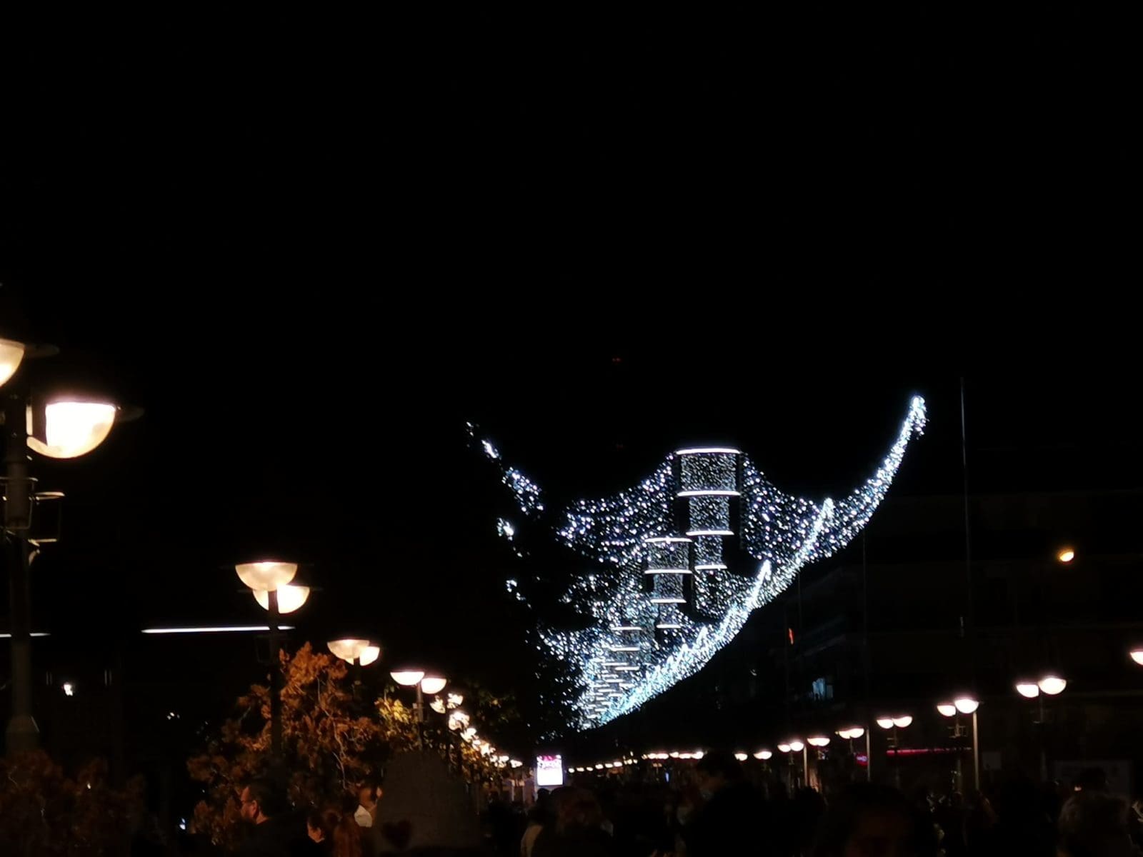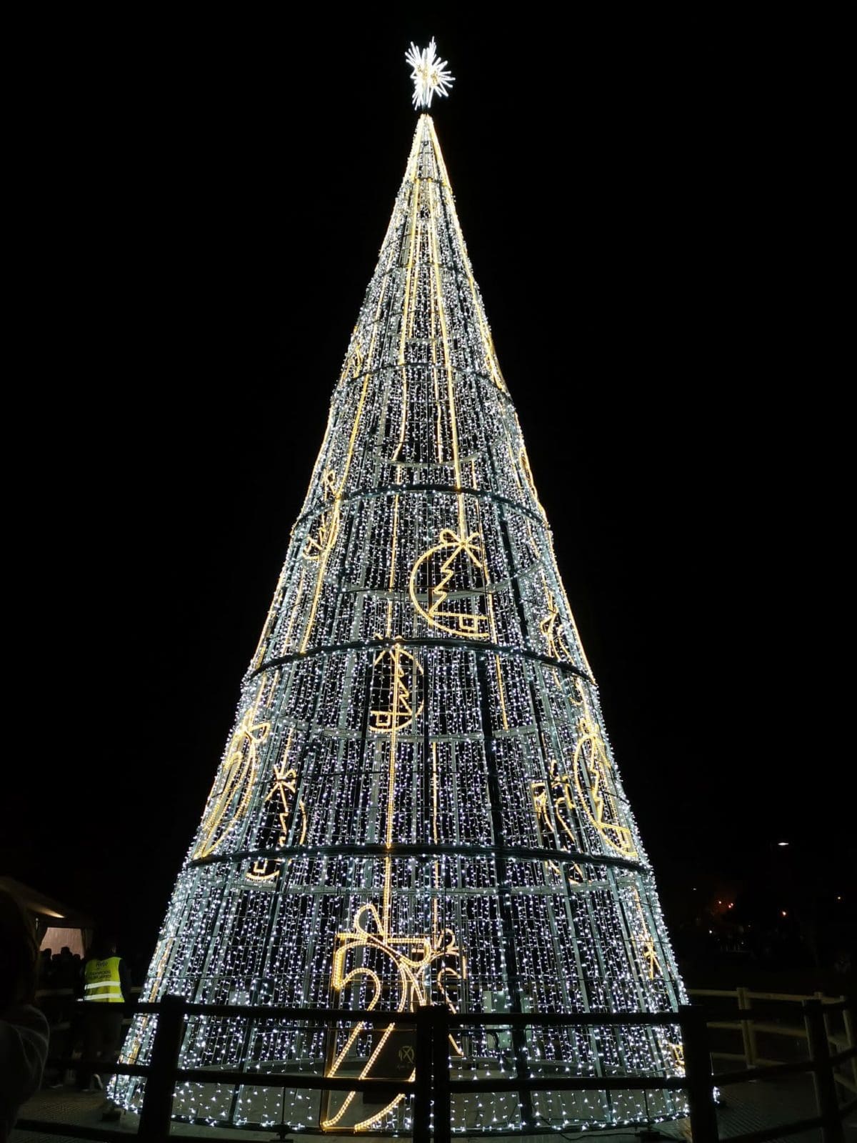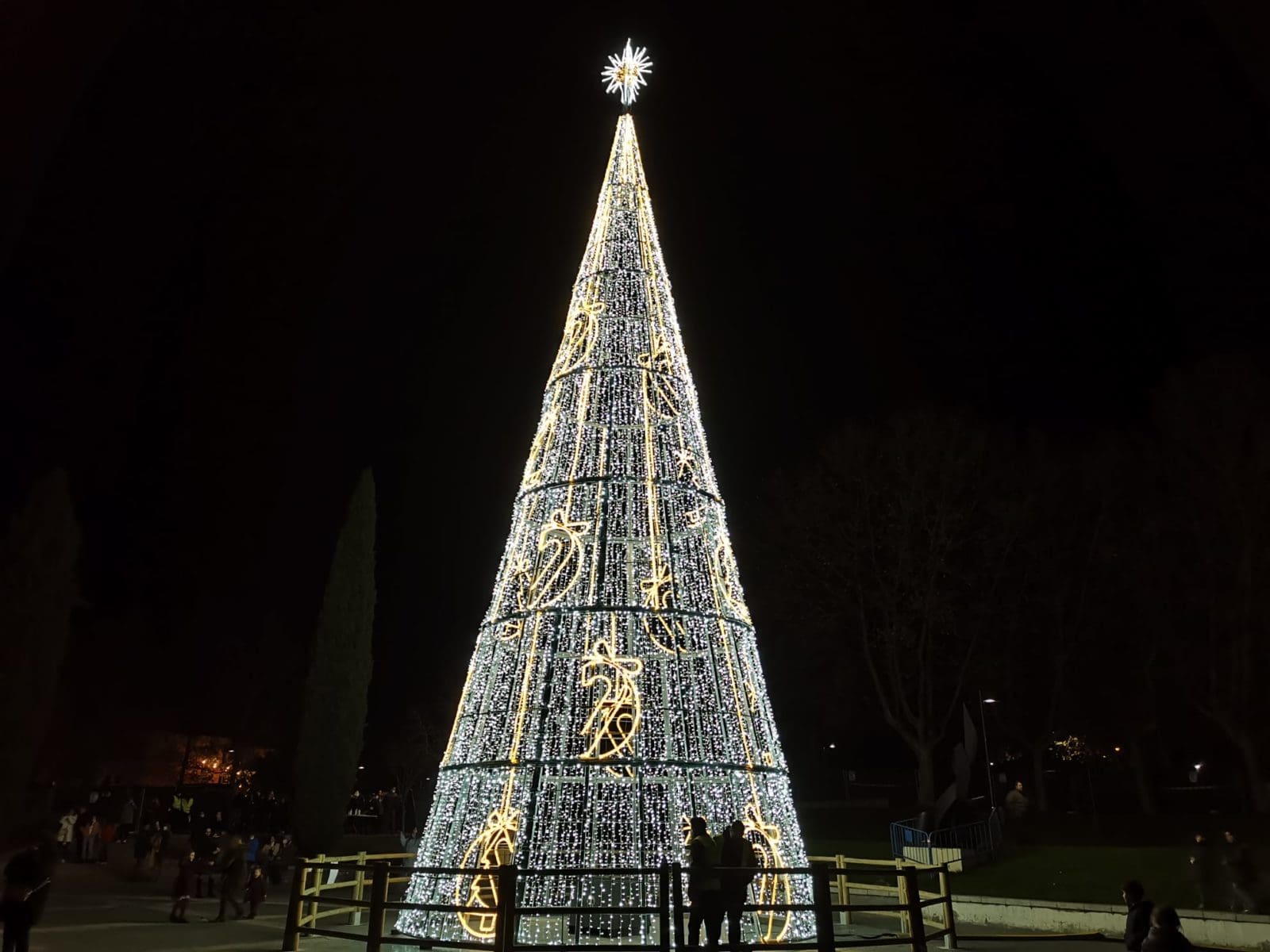JULIA BACHILLER. La inauguración del alumbrado de Navidad en Majadahonda tuvo lugar este sábado 11 de diciembre (2021), acto anunciado dentro del programa de actividades navideñas difundido por el Ayuntamiento. Se hizo tras finalizar el concierto de la reconocida banda “Taburete”, a cuyo concierto se accedió con mascarilla (que luego la mayoría de los asistentes se quitó sin guardar distancia social aunque a la entrada se ofrecía gel). Y llegó el momento de un segundo espectáculo. Este estuvo a cargo del alcalde de Majadahonda José Luis Álvarez Ustarroz y del concejal de Festejos, Eduardo González Camino, quienes sobre el escenario, en compañía de los integrantes del concierto, accionaron el botón del encendido de las esperadas luces navideñas, momento en el cual los focos alumbraron con los colores del emblema nacional. El encendido iluminó el simulado árbol navideño de la Plaza de Colón y la calle central de Majadahonda, la Gran Vía, aunque según aseguraba el consistorio “se llenarán de luz por primera vez distintas rotondas del municipio y las iglesias de la localidad volverán a lucir la estrella de Belén”, algo que habrá que comprobar en los próximos días. A grandes rasgos esto es lo que se pudo apreciar en tan señalado día.