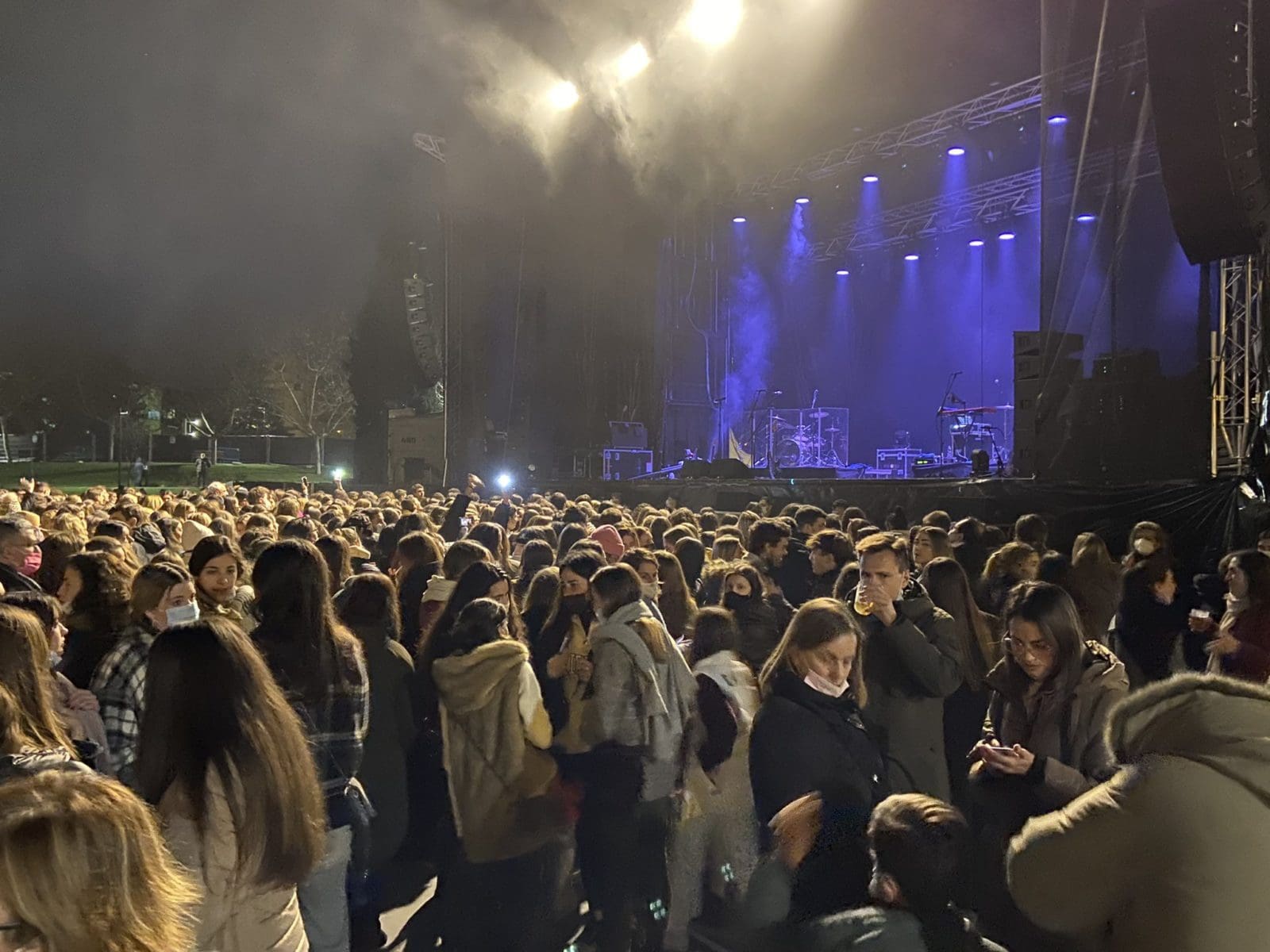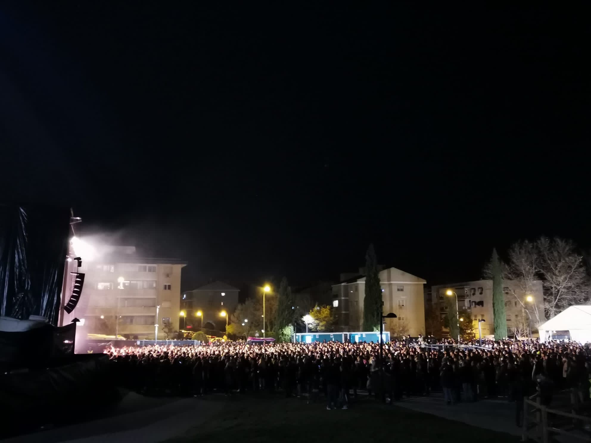 En el interior Dj Tito amenizaba los minutos antes del comienzo de la actuación. Fue curioso comprobar como muchos jóvenes seguidores del grupo se ubicaban en una zona alta del parque, cercana al Kiosco, presenciando el concierto detrás de las vallas, mientras que otros optaron por quedarse fuera frente a la puerta principal de acceso para verlo desde allí, ya que no podían pagar la entrada. Algunos de estos jóvenes lamentaban que un gobierno de Majadahonda PP-Vox, que lleva «alardeando» desde el comienzo de la actual legislatura de un superávit, llevara casi dos años sin hacer uso del presupuesto de la Concejalía de Festejos pero no les daba la opción de acceder gratuitamente como empadronados. A tenor de lo ocurrido, quizás debería ser algo a tener en consideración. La organización de este concierto coincidió con el encendido del alumbrado navideño aunque este habitualmente se realizaba el mismo día de la inauguración del belén municipal.