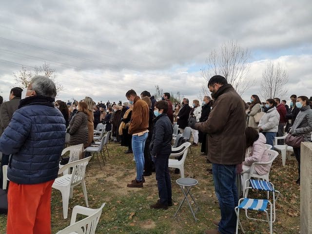 En referencia al acto añadió: “Queridos hermanos, estamos en un campo, no hay nada, vamos a bendecir una piedra, queremos hacerlo porque aquí estáis un grupo de discípulos de Cristo que queremos mantener viva esa luz que es Cristo. Los hombres necesitamos luz para caminar, necesitamos dirección, necesitamos también que se nos propongan metas”. Y seguidamente afirmó: “Ni somos los más santos, ni los mejores, pero sí hemos conocido a Jesucristo y sabemos que esa luz y esa propuesta de vida que nos hace el Señor cambia nuestro corazón”. Y continuó diciendo: “La fe no es una cuestión secundaria, no es un adjetivo, es un sustantivo, una manera de vivir, de entender la vida, de estar junto al otro, de hacer proyectos que van en beneficio de todos”. En sus palabras finales añadió: “Dejadme deciros: bienaventurados porque creéis”. En relación con la llegada de estas fechas navideñas recordó: “No es una fiesta más, es la fiesta de los cristianos, Dios con nosotros y entre nosotros”.
